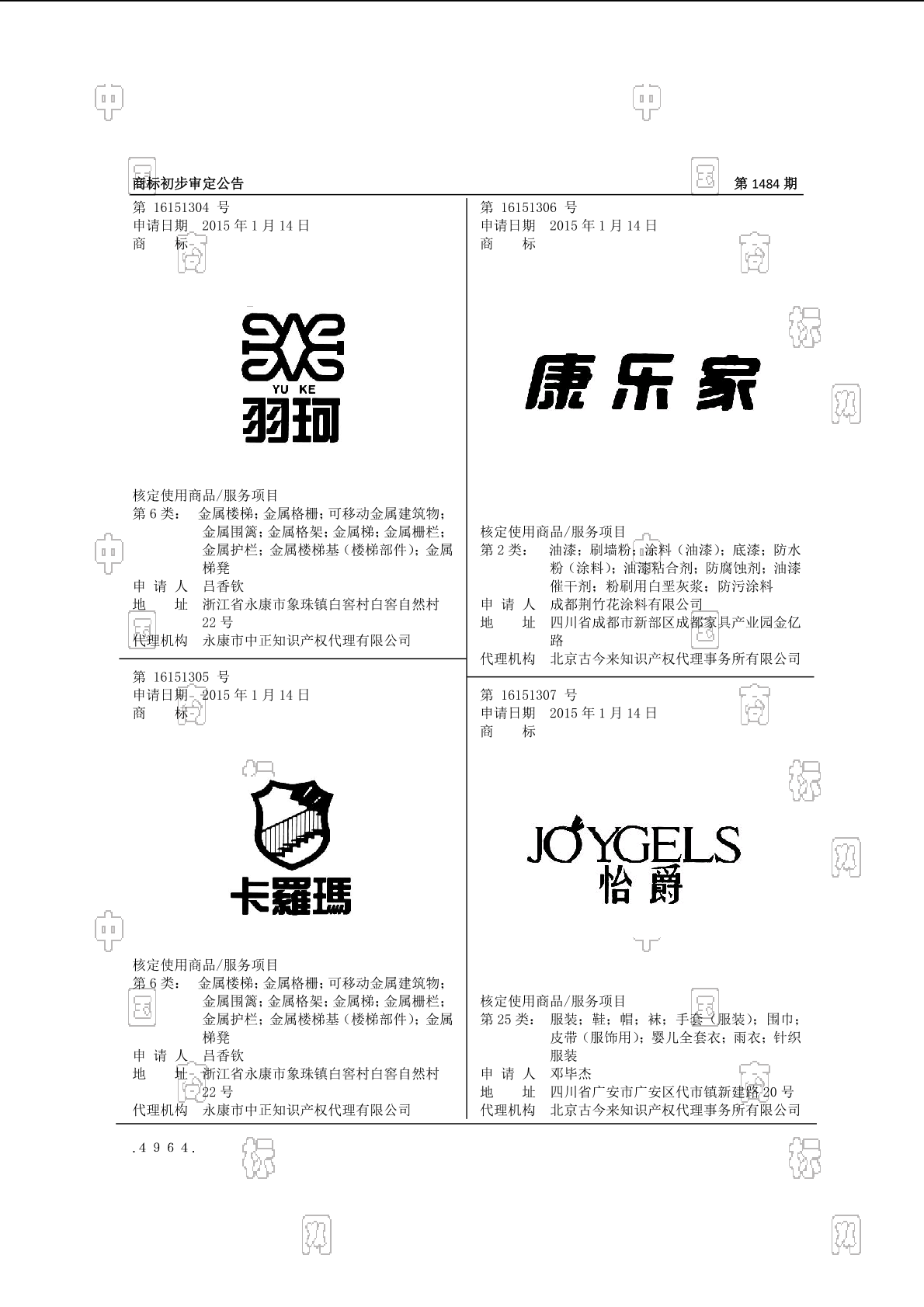 0205-刷墙粉;0205-底漆;0205-油漆;0205-油漆催干剂;0205-油漆粘合剂;0205-涂料(油漆);0205-粉刷用白垩灰浆;0205-防水粉(涂料);0205-防污涂料;0206-防腐蚀剂 - 1484