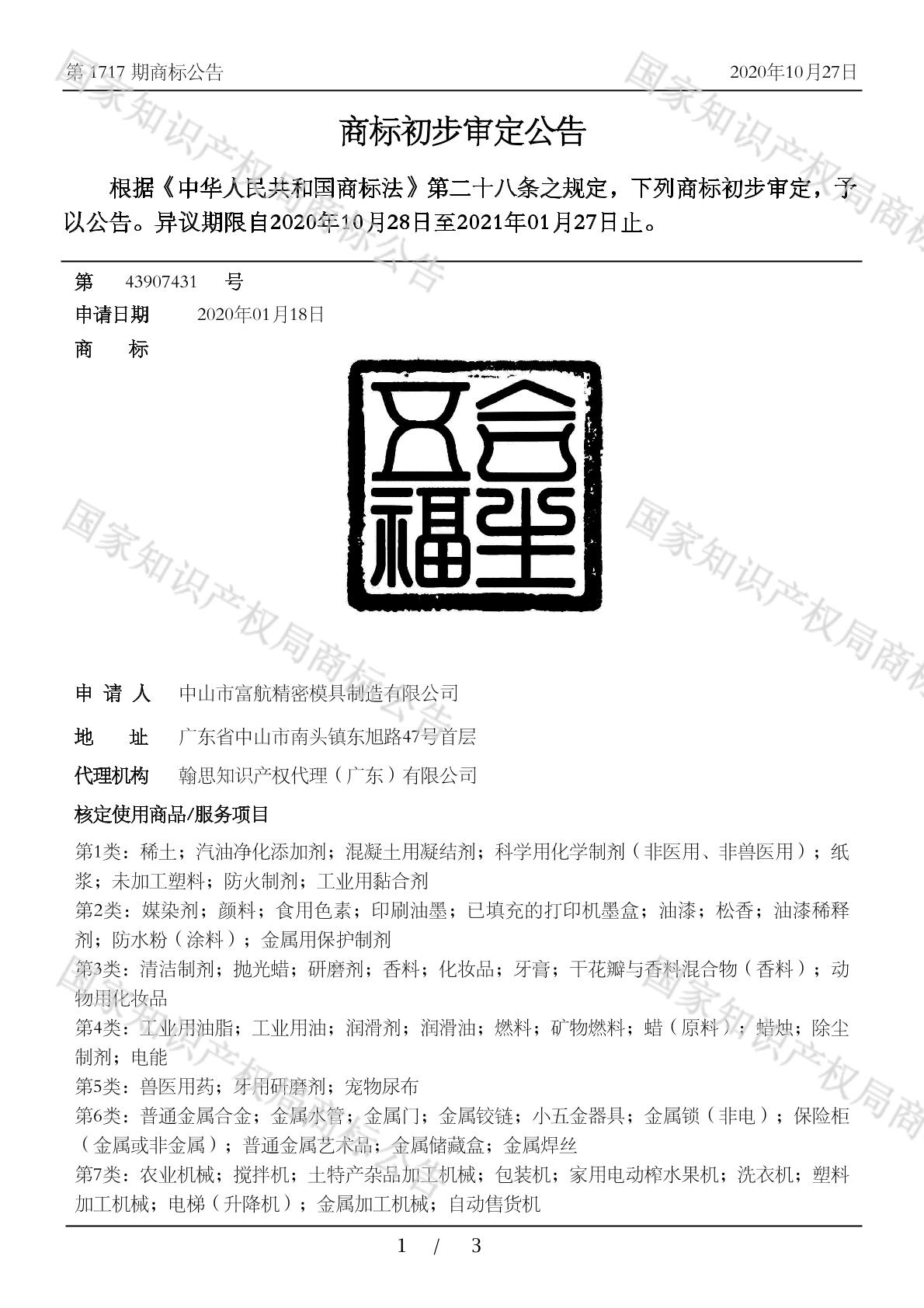 2020-01-18 商标注册申请 | 申请收文