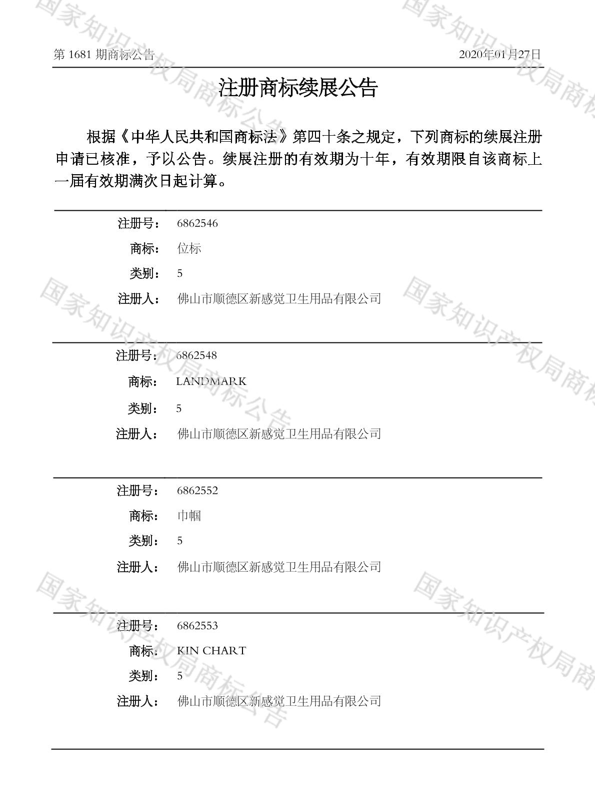 0501-卫生消毒剂;0503-净化剂;0505-灭微生物剂;0506-卫生巾;0506-卫生毛巾带(毛巾);0506-哺乳用垫;0506-月经垫;0506-月经短内裤;0506-消毒纸巾 - 1210