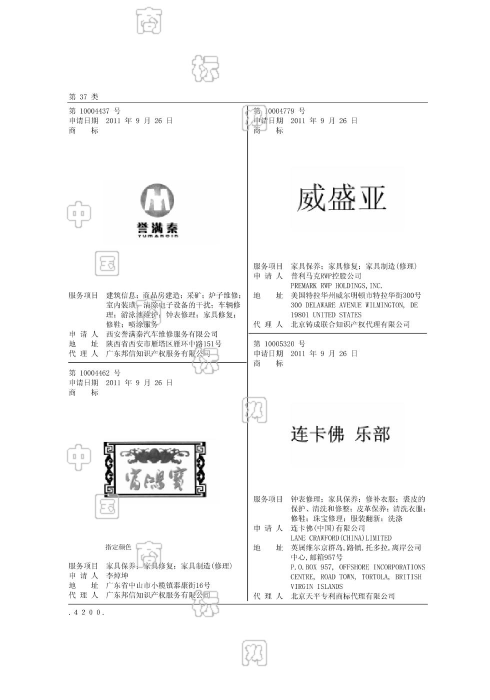 3711-钟表修理;3715-家具保养;3716-修补衣服;3716-服装翻新;3716-洗涤;3716-清洗衣服;3716-皮革保养;3716-裘皮的保护、清洗和修整;3718-修鞋;3718-珠宝修理 - 1325