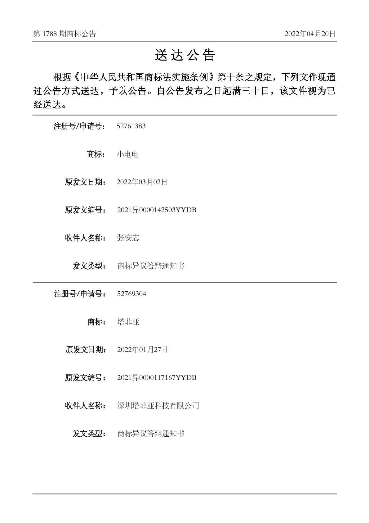 2022-04-20 商标异议申请 | 排版送达公告(商标异议答辩通知书)