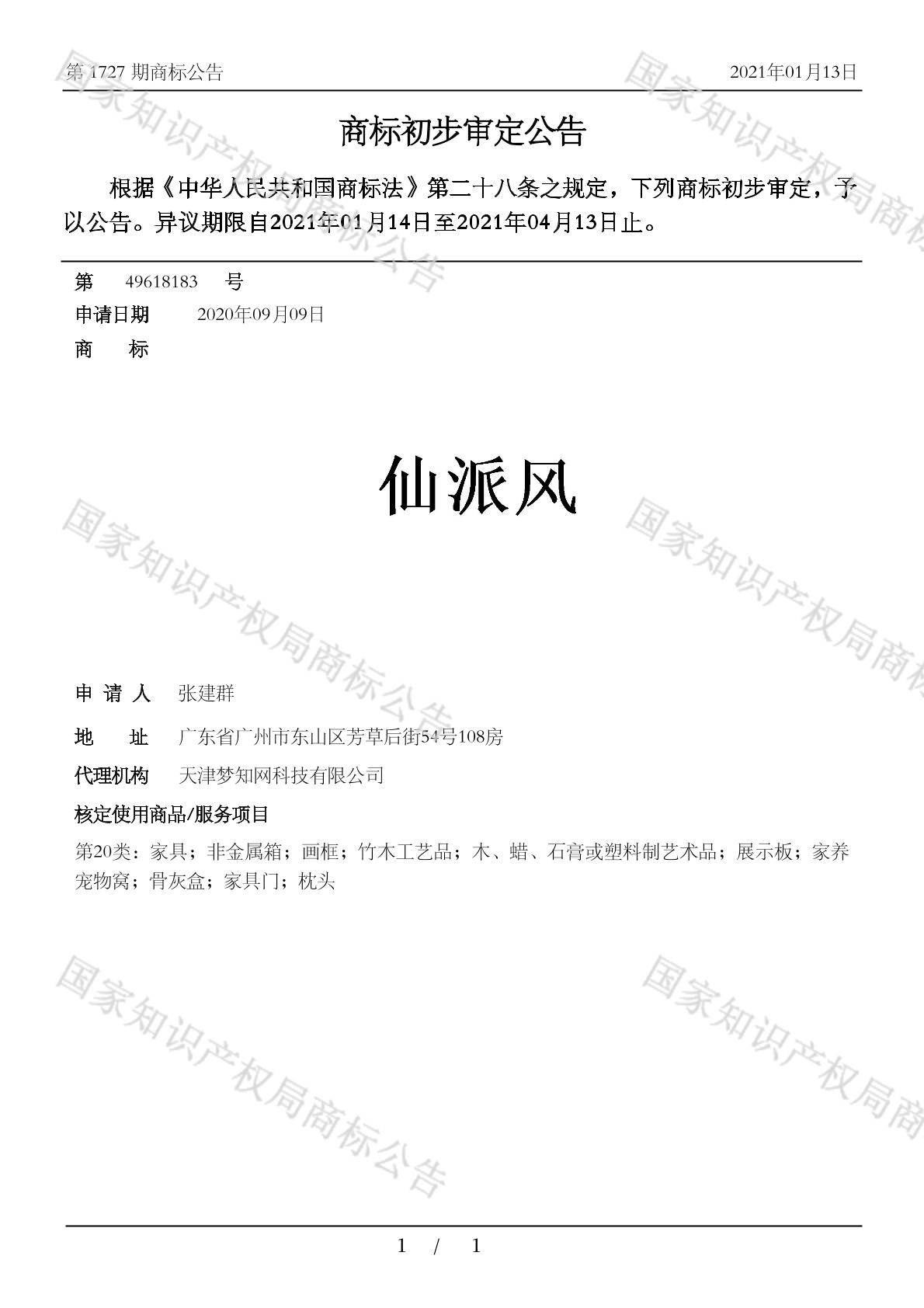2001-家具;2002-非金属箱;2004-画框;2005-竹木工艺品;2006-木、蜡、石膏或塑料制艺术品;2007-展示板;2009-家养宠物窝;2011-骨灰盒;2012-家具门;2013-枕头 - 1727