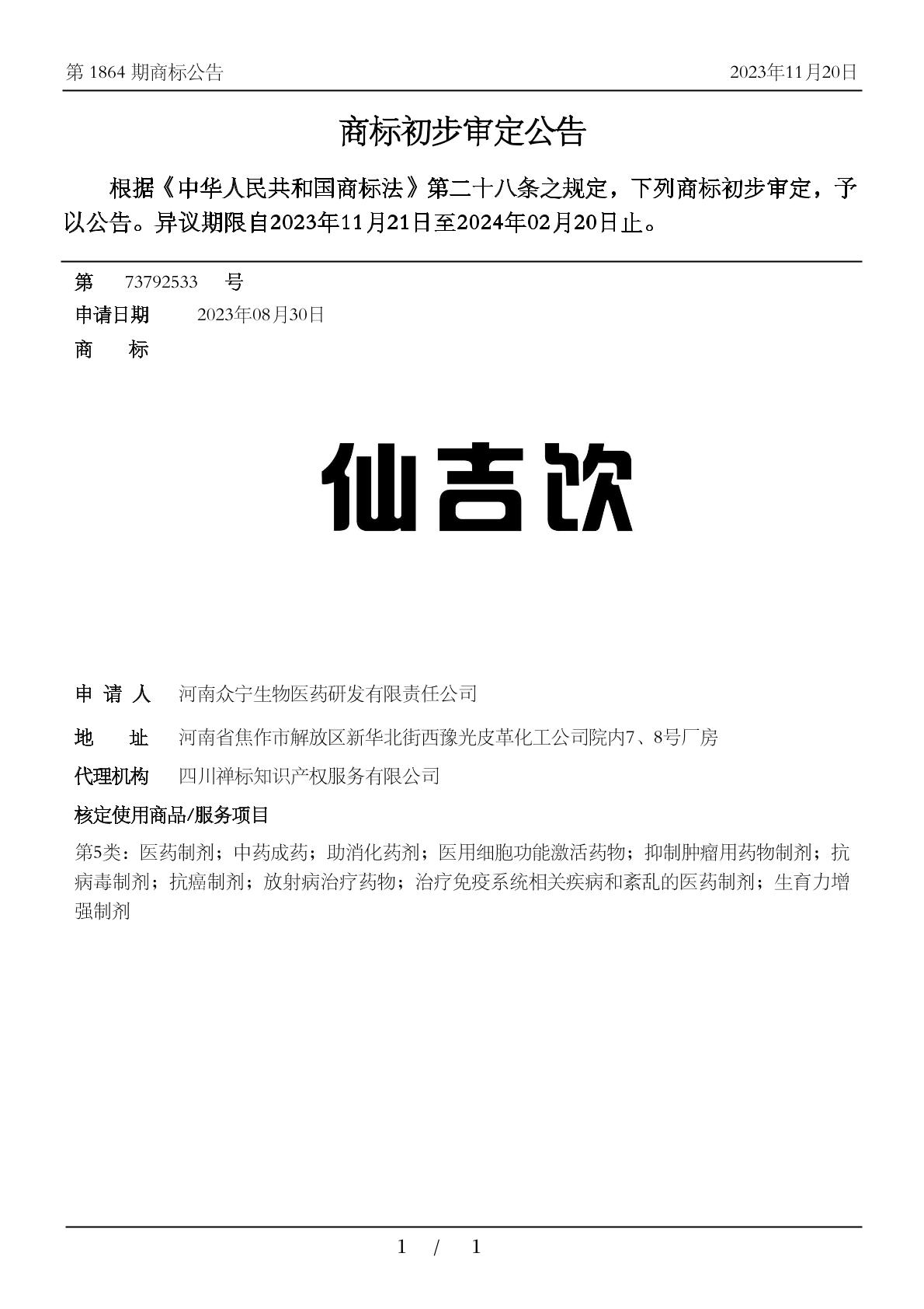 【仙吉饮】商标详情
