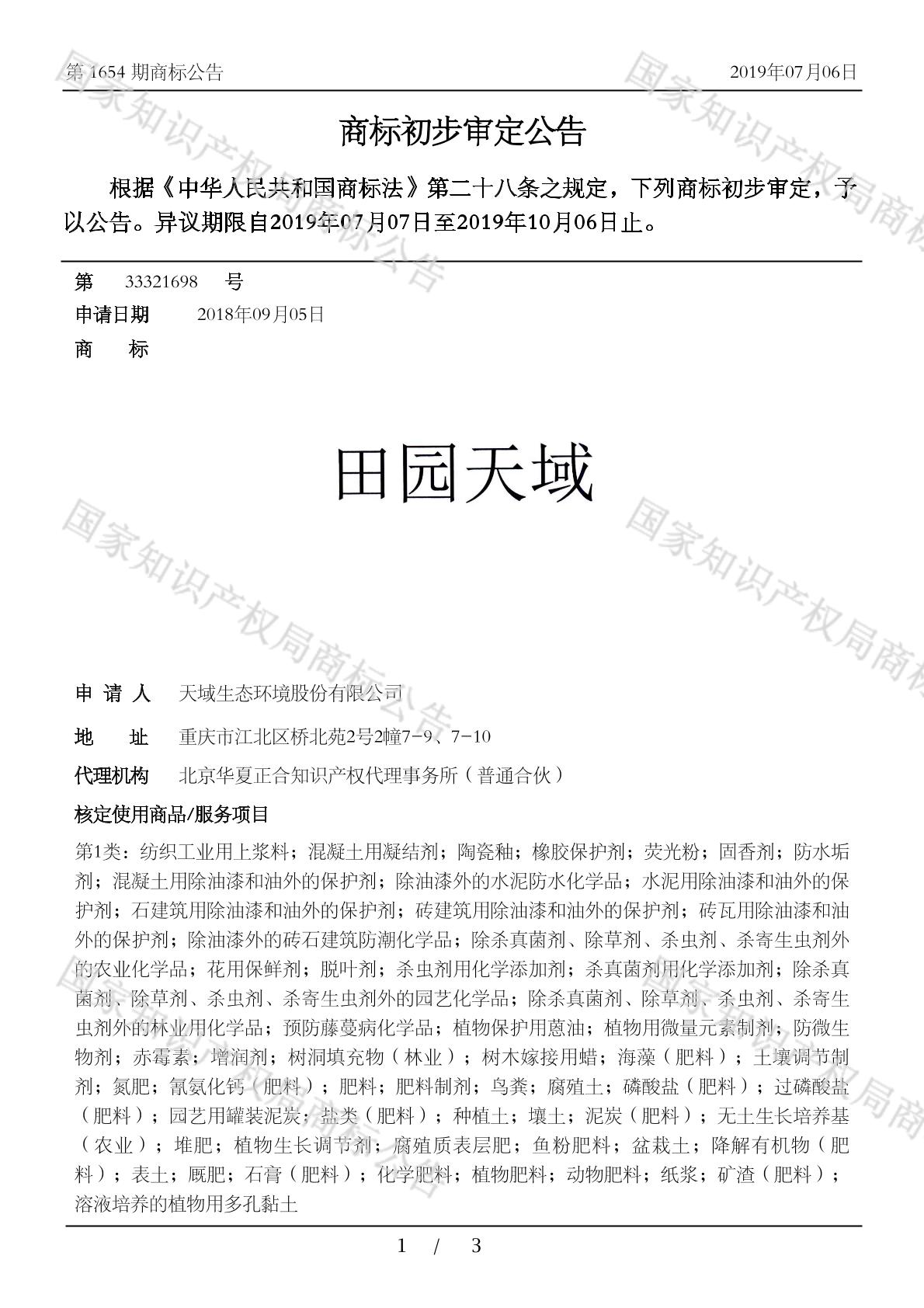 【田园天域】商标详情