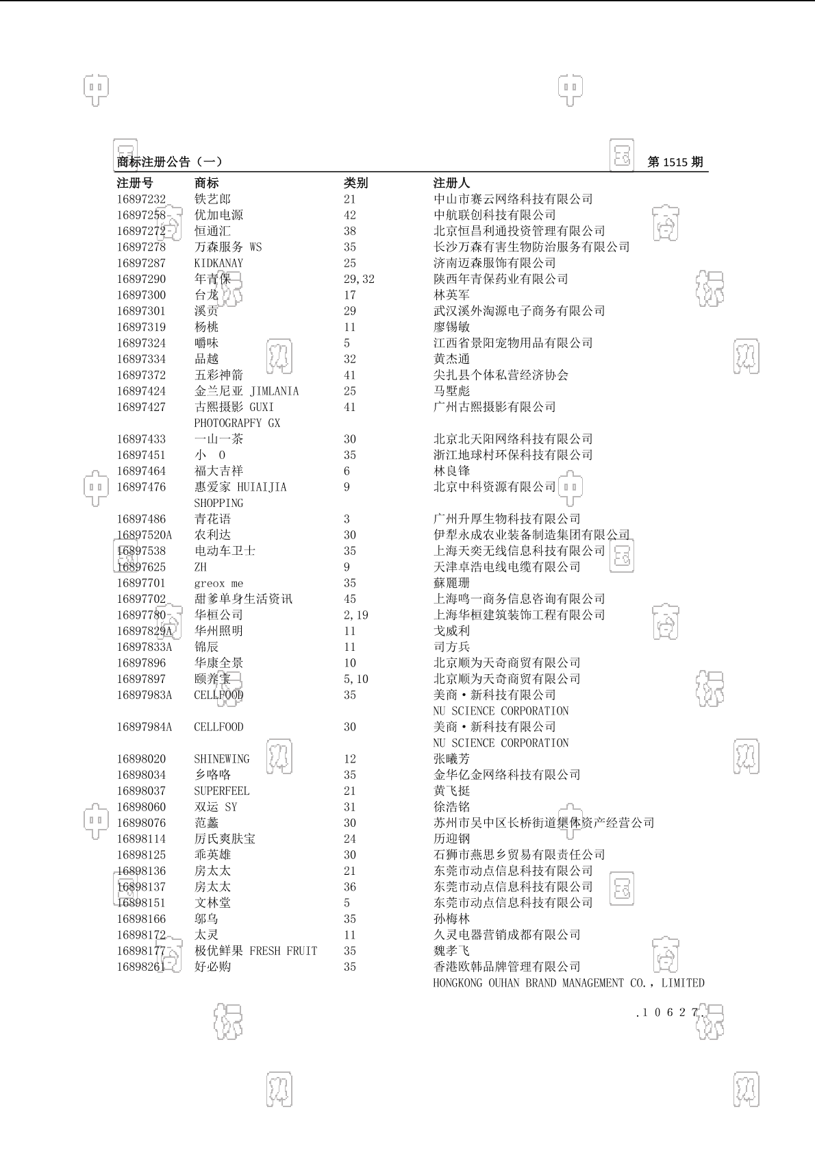 2016-09-20 商标注册申请 | 注册证发文