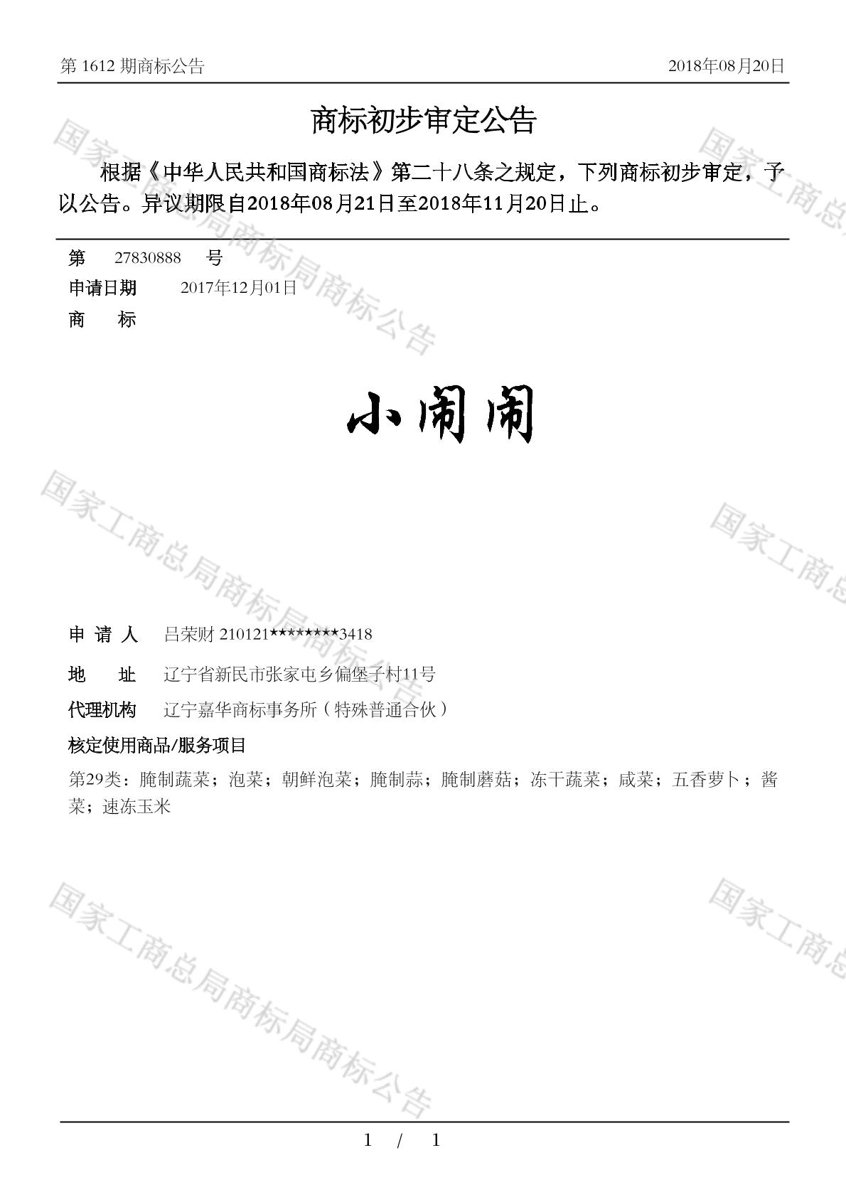【小闹闹】商标详情
