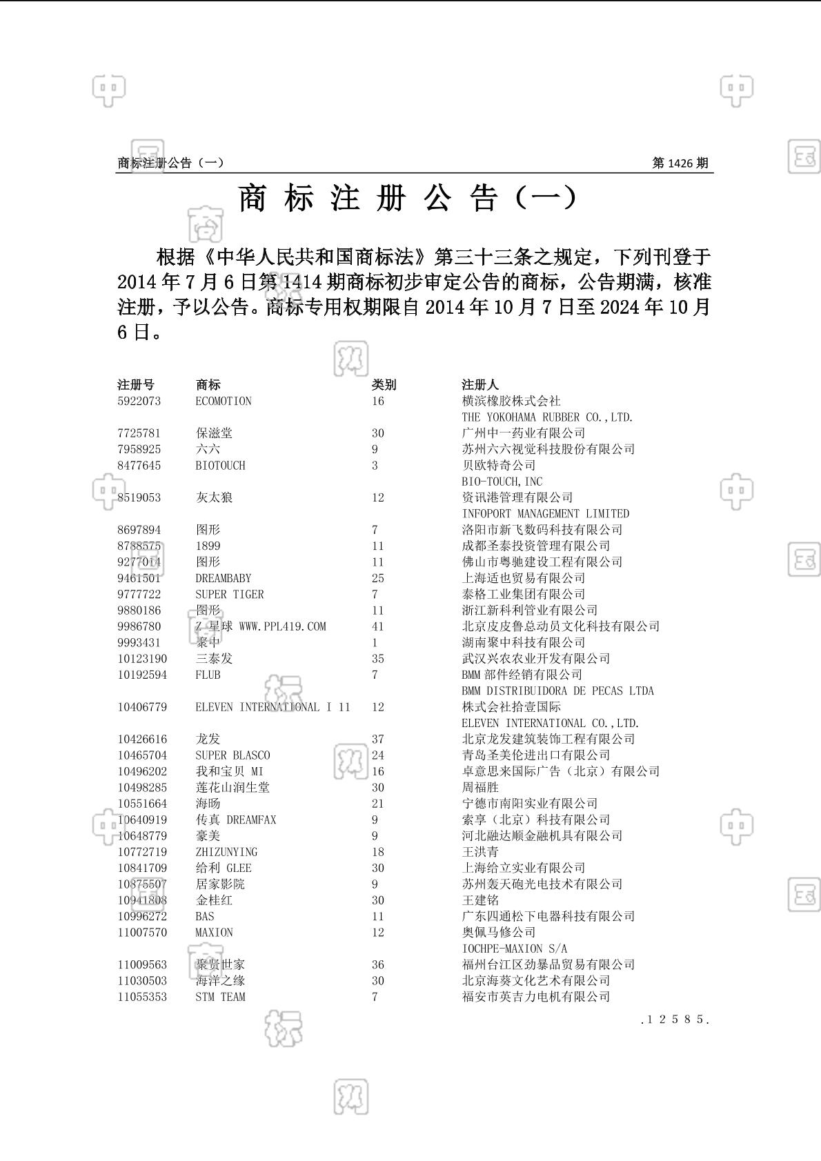 2014-04-29 商标注册申请 | 注册申请初步审定