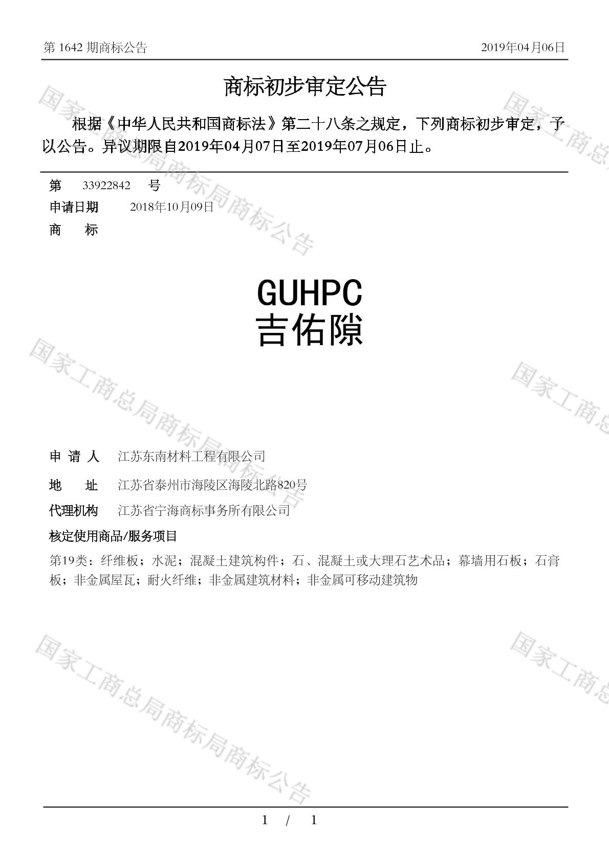 1901-纤维板;1902-幕墙用石板;1903-石膏板;1904-水泥;1905-混凝土建筑构件;1906-非金属屋瓦;1907-耐火纤维;1909-非金属建筑材料;1910-非金属可移动建筑物;1914-石、混凝土或大理石艺术品 - 1642