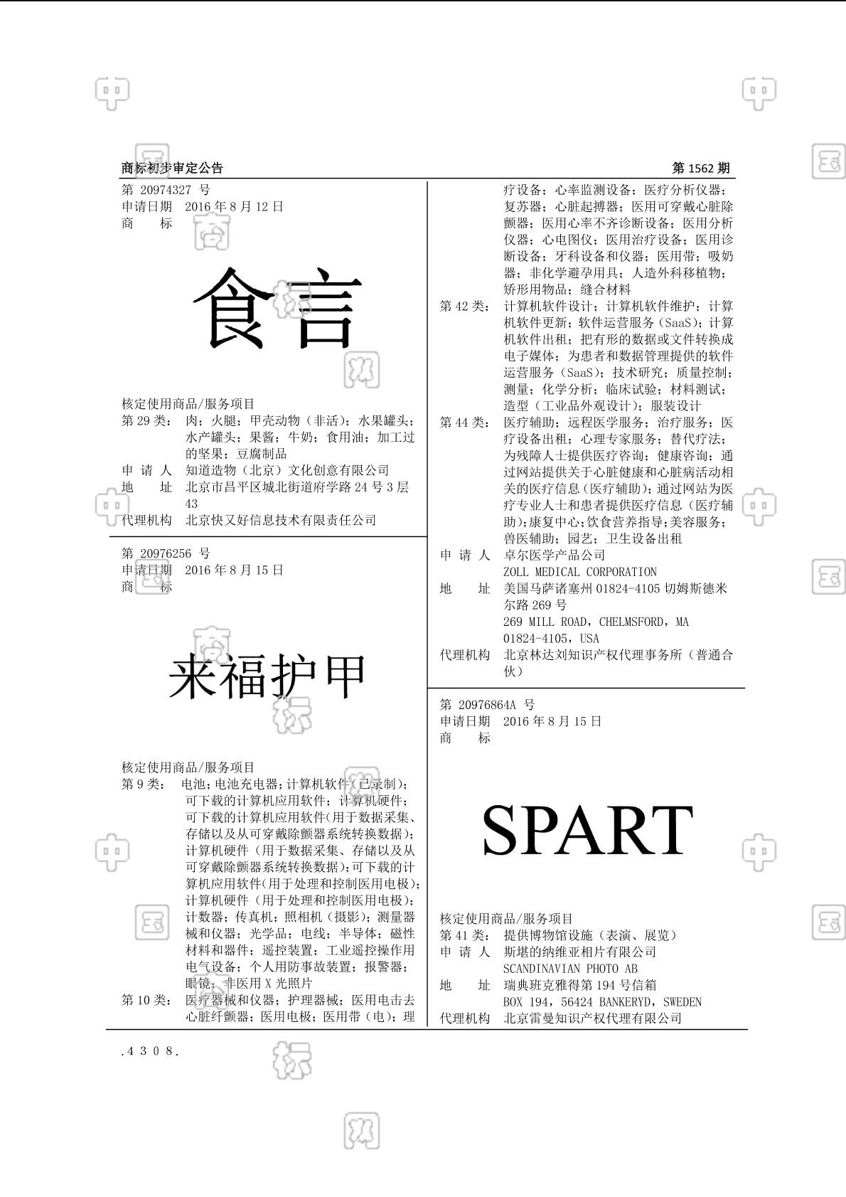 4209-技术研究;4209-质量控制;4210-测量;4211-化学分析;4212-临床试验;4214-材料测试;4216-造型(工业品外观设计);4218-服装设计;4220-为患者和数据管理提供的软件运营服务(SaaS);4220-把有形的数据或文件转换成电子媒体;4220-计算机软件出租;4220-计算机软件更新;4220-计算机软件维护;4220-计算机软件设计;4220-软件运营服务(SaaS) - 1562