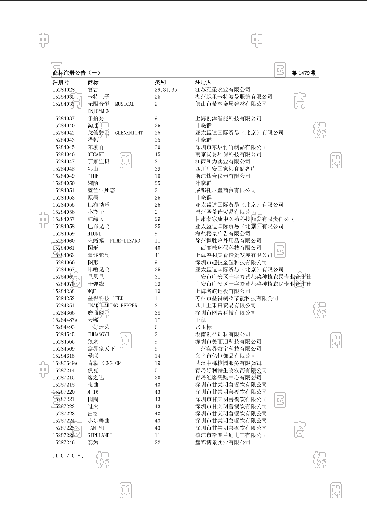 2015-11-15 商标注册申请 | 商标注册申请注册公告排版完成