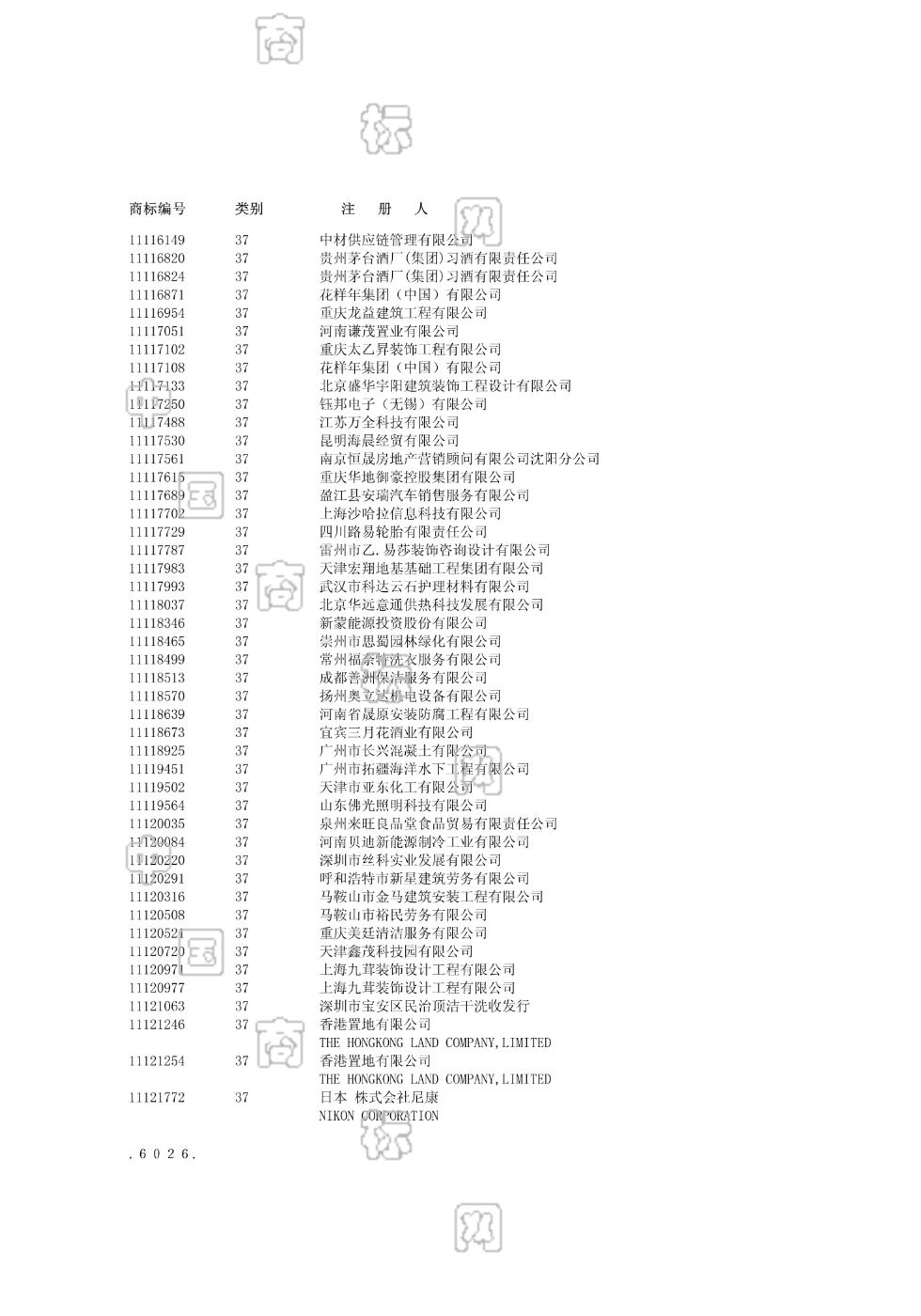 3702 , 3705 , 3706 , 3707 , 3708 , 3715 , 3718 3702-建筑,
