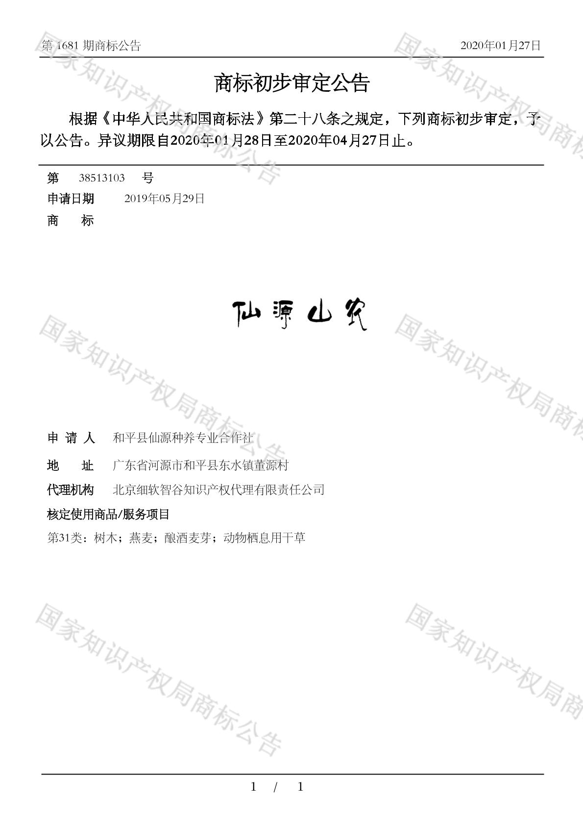 【仙源山农】商标详情
