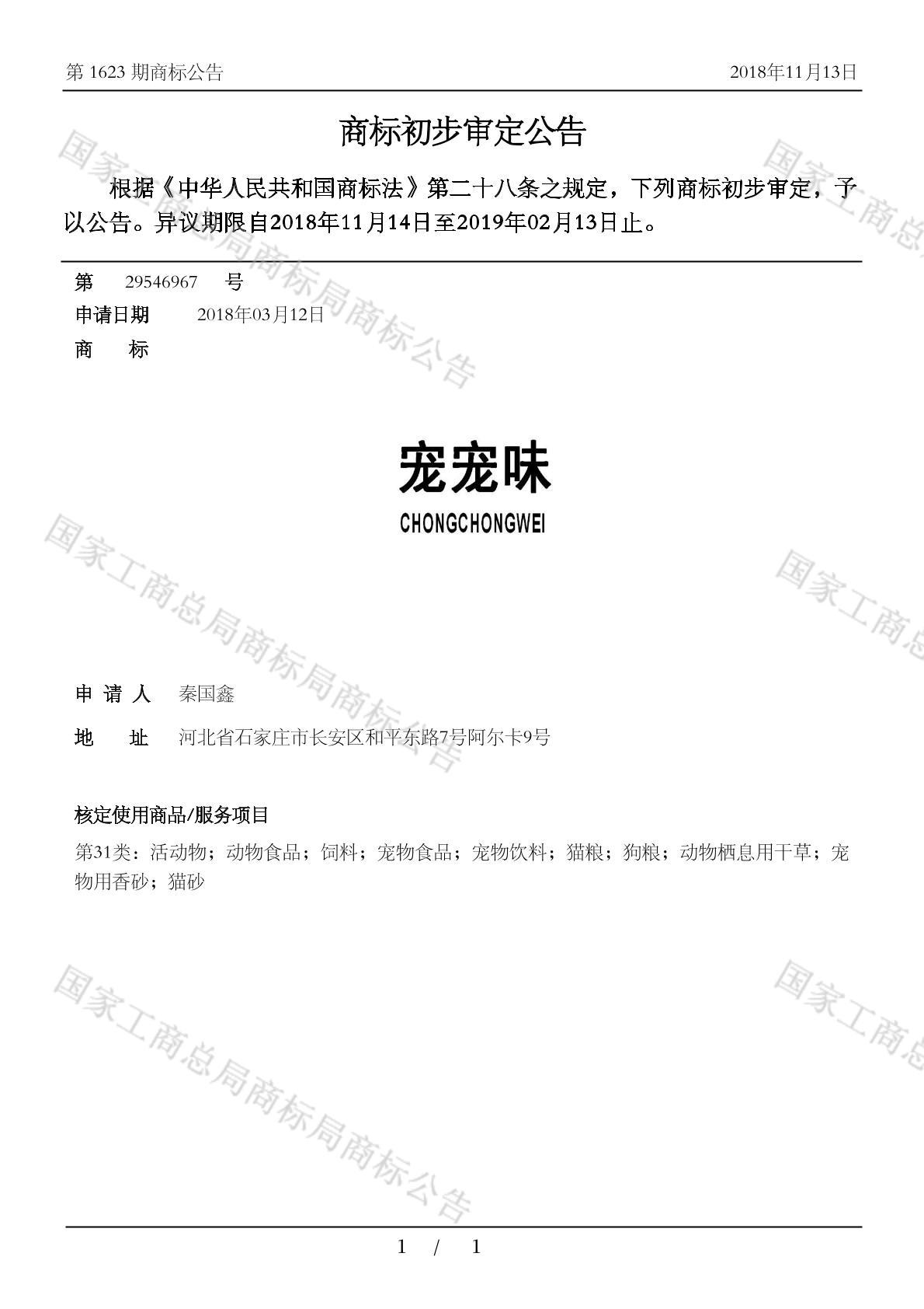 3104-活动物;3108-动物食品;3108-宠物食品;3108-宠物饮料;3108-狗粮;3108-猫粮;3108-饲料;3110-动物栖息用干草;3110-宠物用香砂;3110-猫砂 - 1623