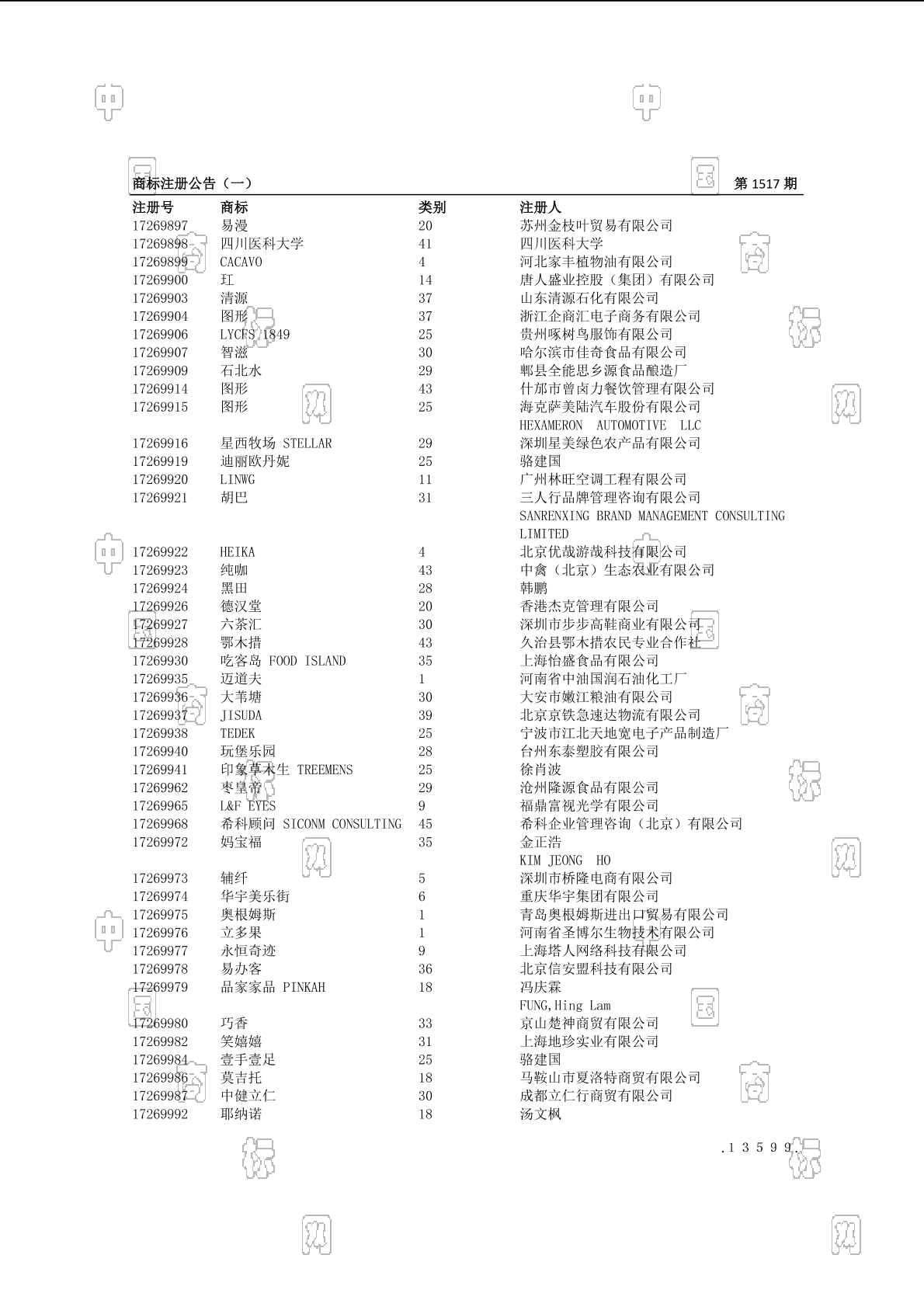 1801-动物皮;1802-包;1802-家具用皮缘饰;1802-皮制系带;1802-皮箱或皮纸板箱;1802-钱包(钱夹);1804-伞;1805-手杖;1806-宠物服装;1807-制香肠用肠衣 - 1505
