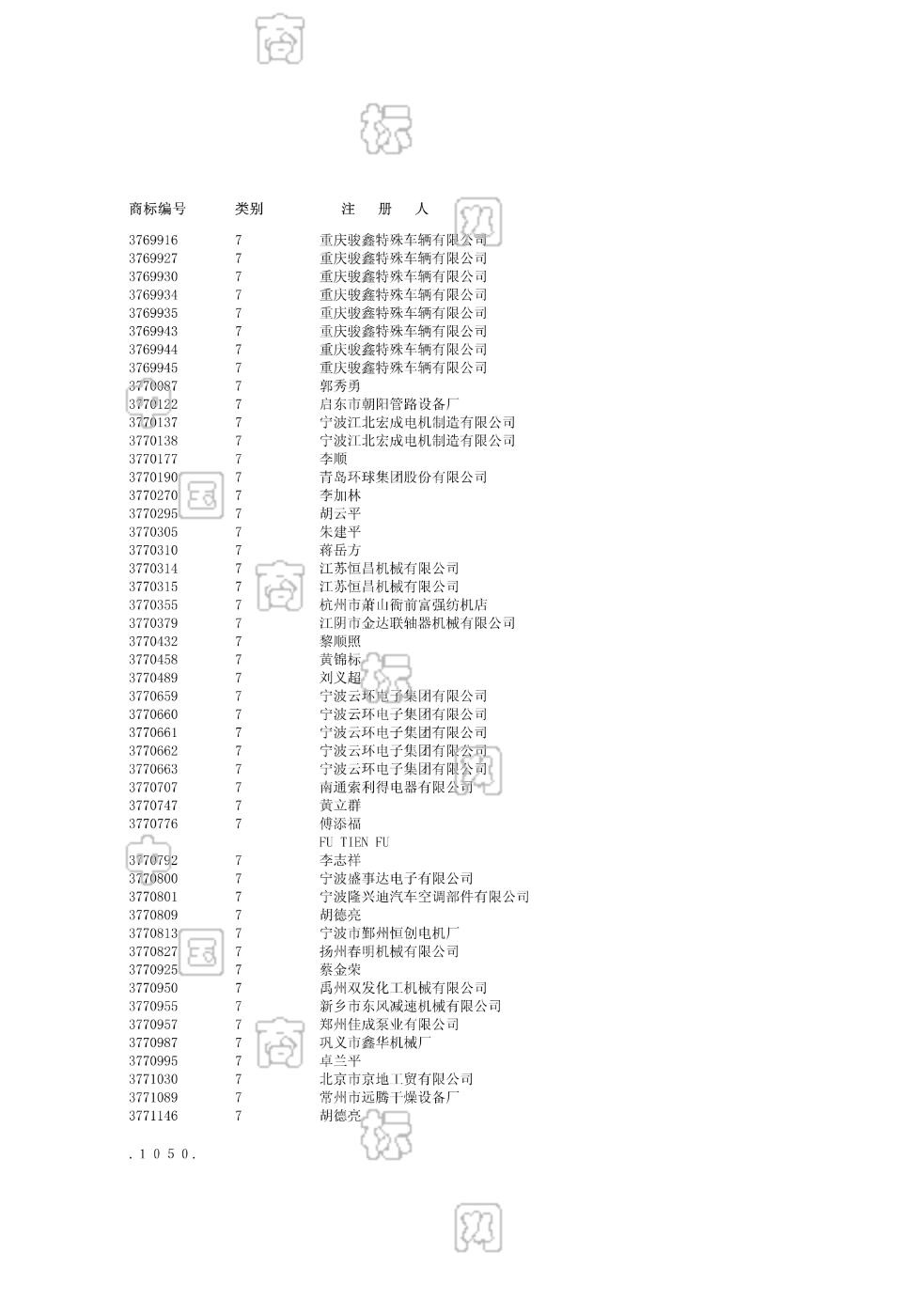 商标注册公告(一) 2007-05-14 第1071期 查看公告