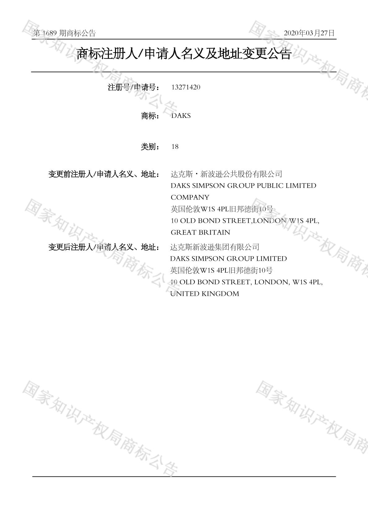 2020-03-16 变更商标申请人/注册人名义/地址 | 核准证明打印发送