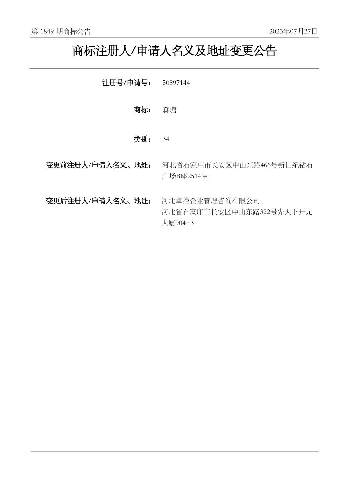 2023-05-22 变更商标申请人/注册人名义/地址 | 申请收文