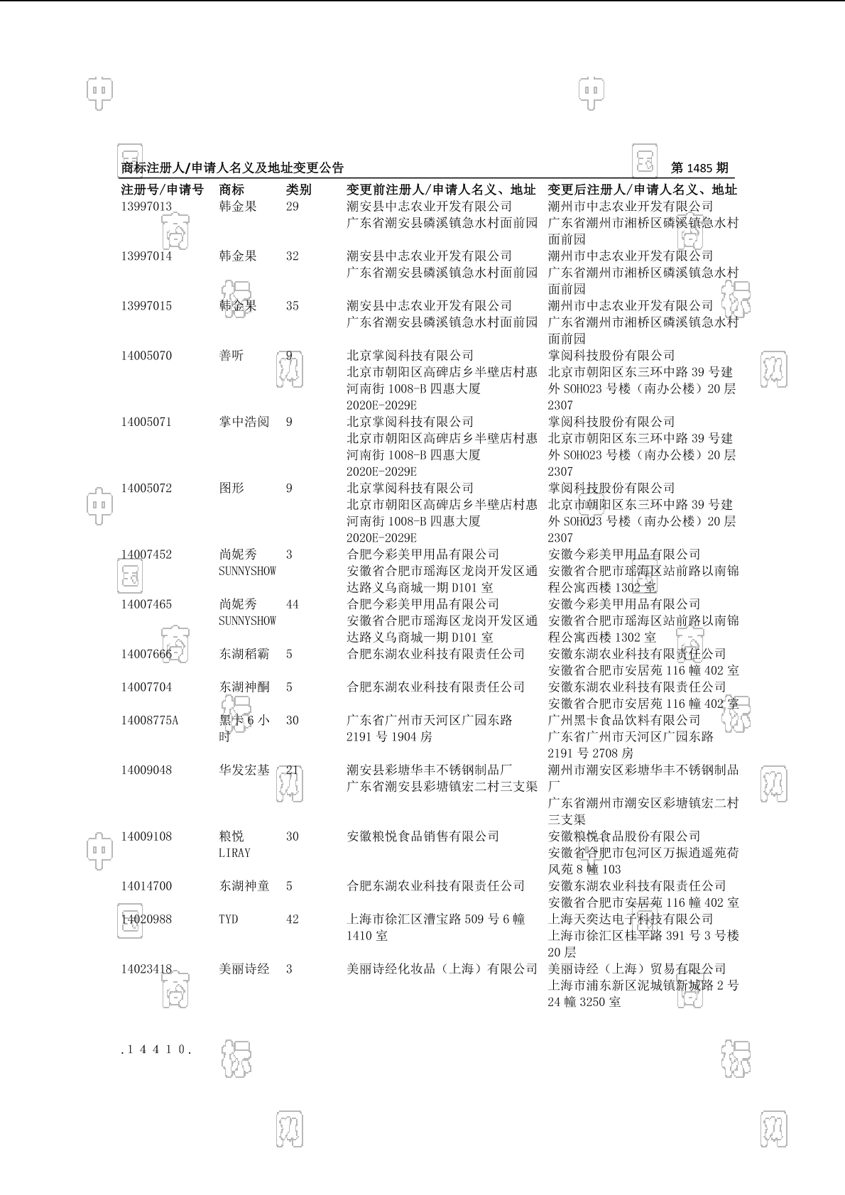 2014-11-13 商标注册申请 | 变更商标申请人/注册人名义/地址中