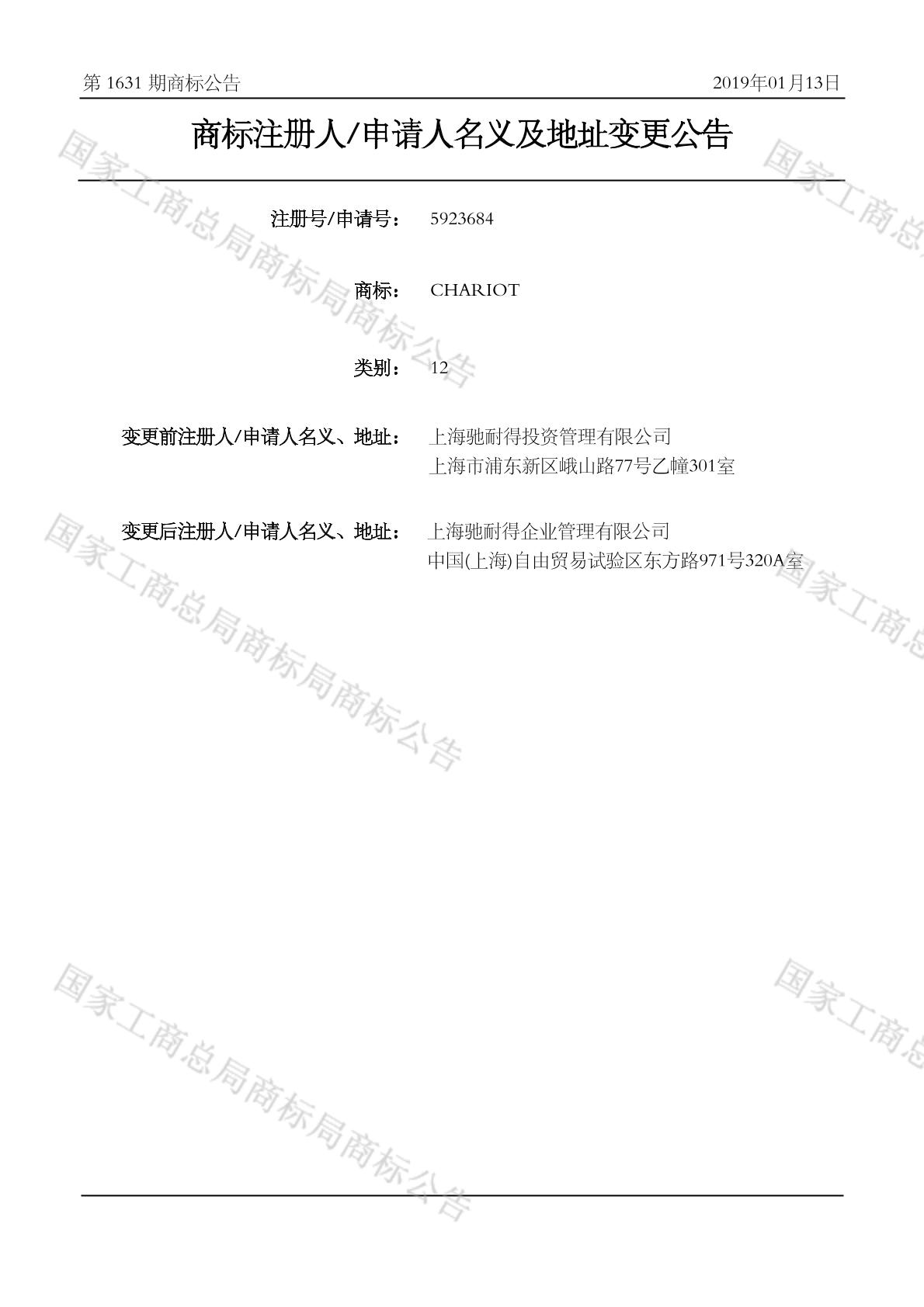 【CHARIOT】商标详情