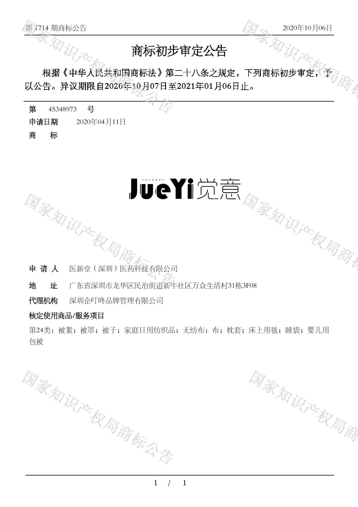 【觉意 SLEEP】商标详情