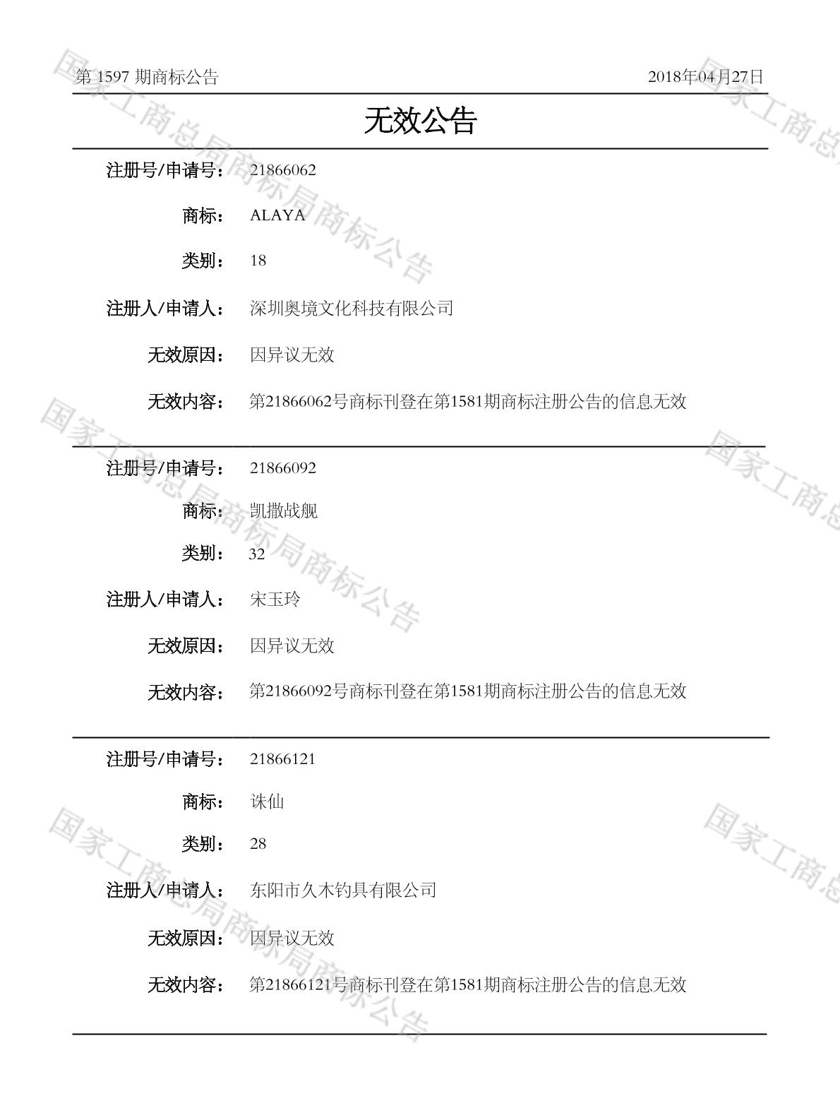 2018-04-29 商标异议申请 | 受理通知发文