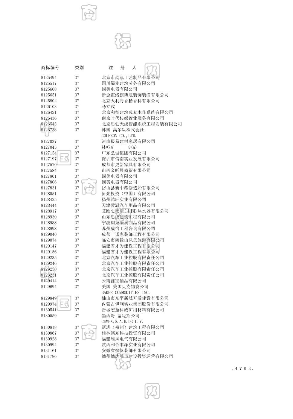 3702-建筑;3702-道路铺设;3704-室内装璜;3704-清洁建筑物(内部);3704-清洁建筑物(外表面);3705-供暖设备的安装和修理;3706-办公室用机器和设备的安装、保养和维修;3706-电器设备的安装与修理;3707-车辆保养 - 1247