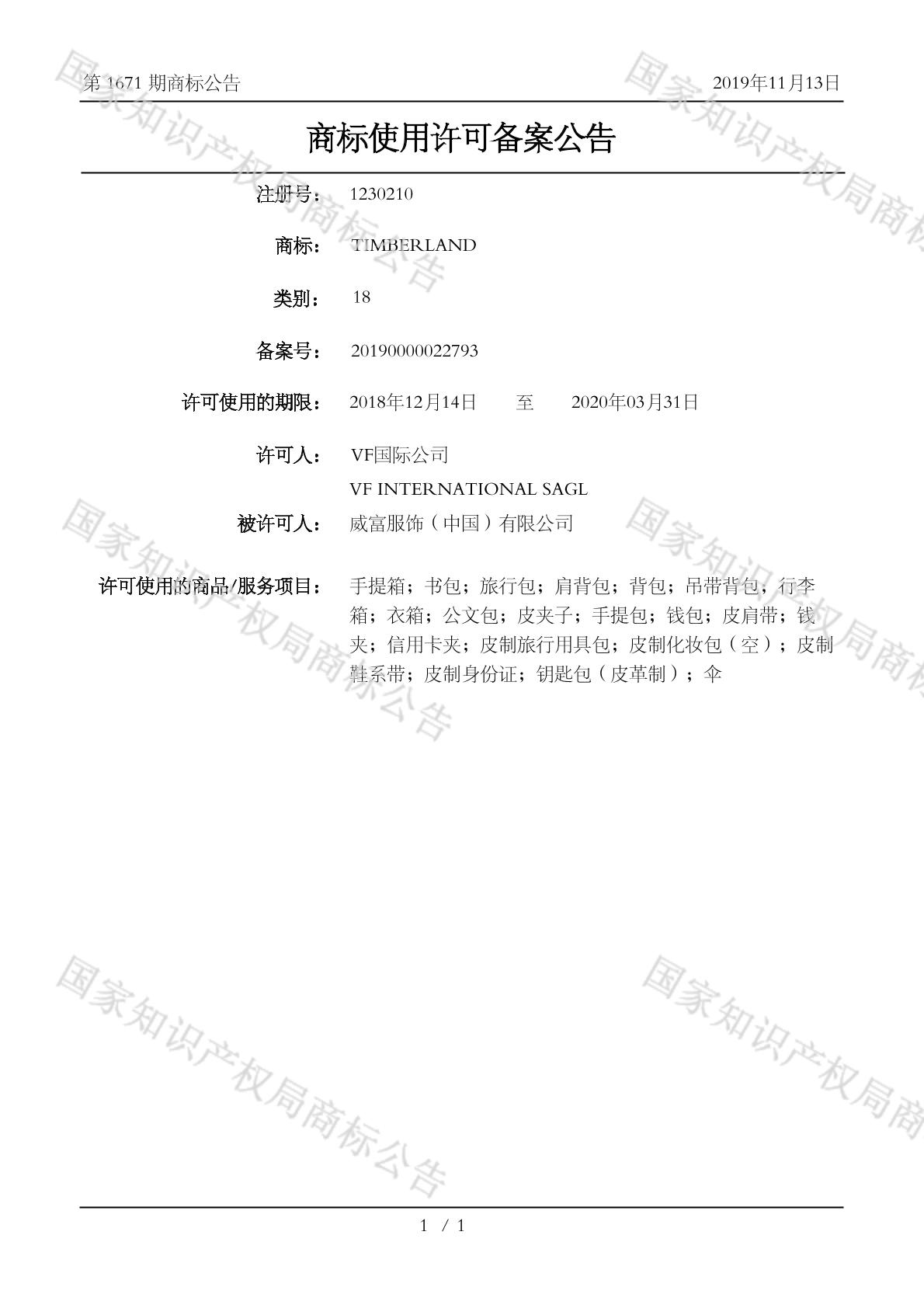 商标使用许可备案公告 2019-11-13 第1671期 查看公告