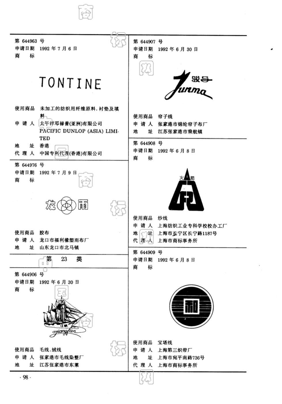 1992-06-30 商标注册申请 | 申请收文