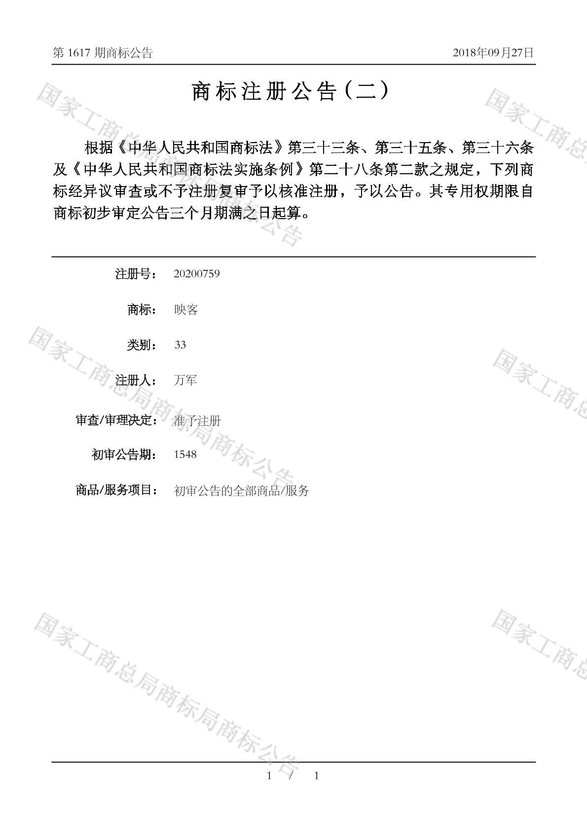 2018-08-29 商标异议申请 | 等待裁定书发文