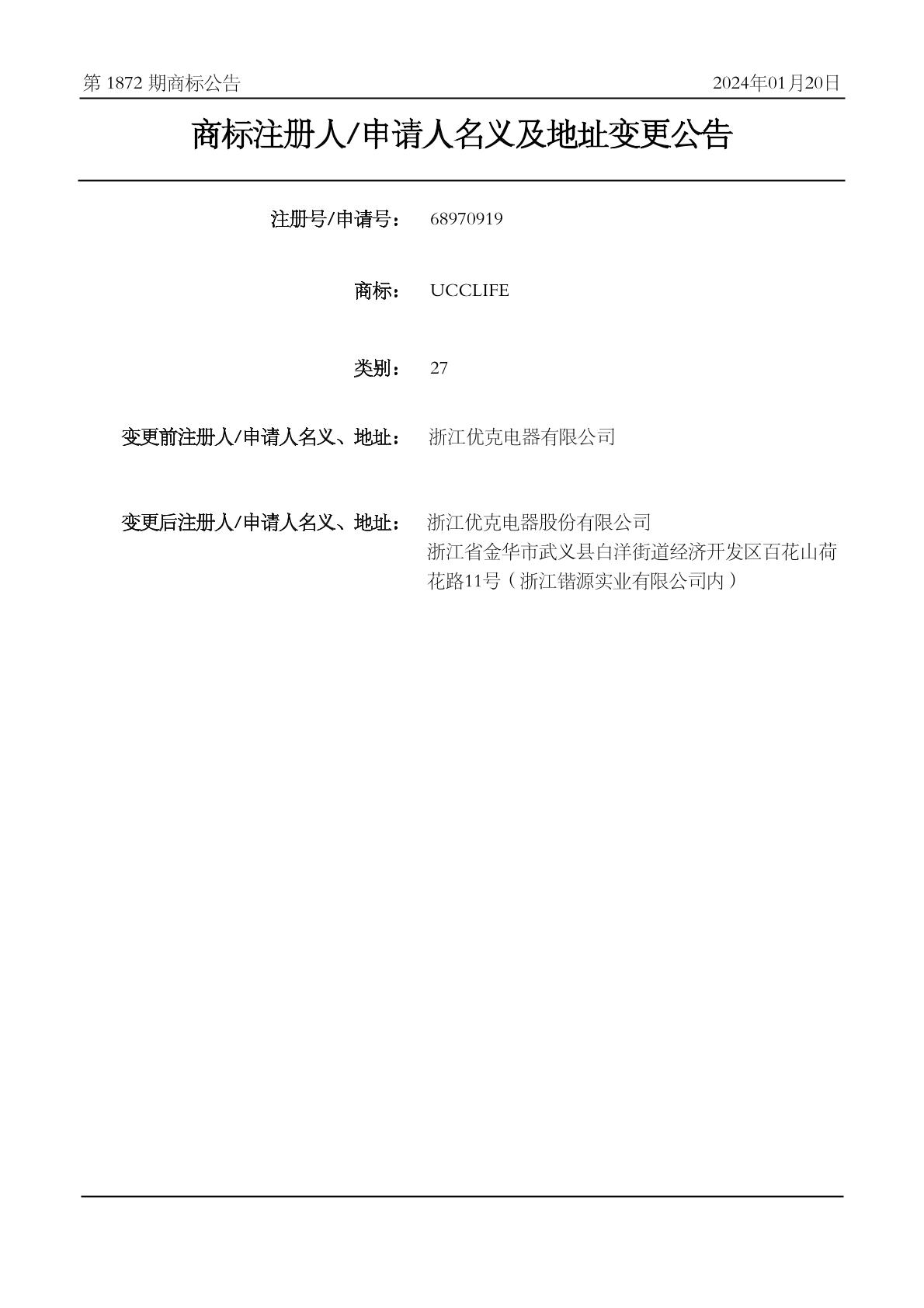 2024-01-16 变更商标申请人/注册人名义/地址 | 核准证明打印发送