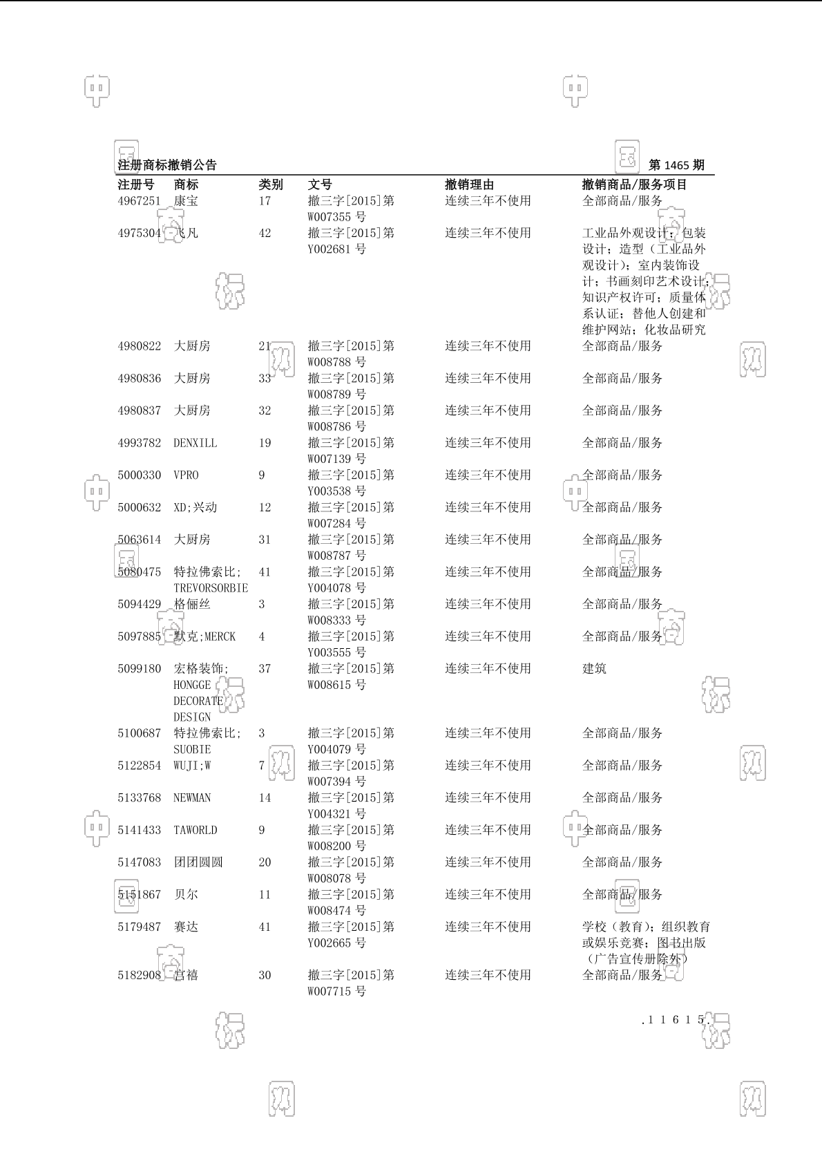 2015-06-12 撤销连续三年停止使用注册商标 | 撤销商标通知发文
