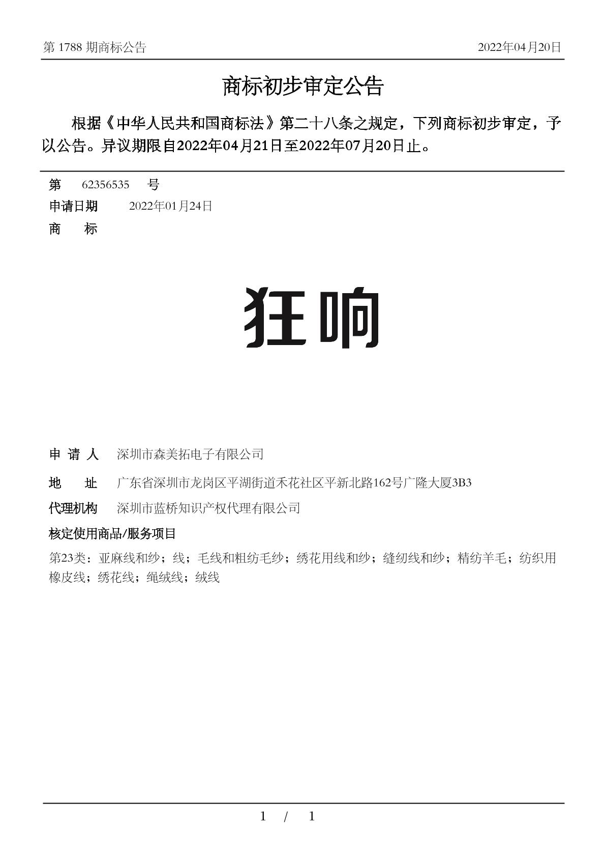 【狂响】商标详情