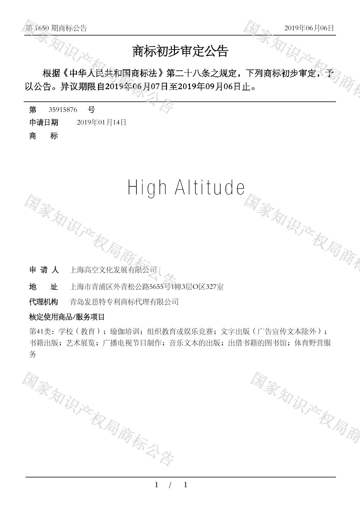 【HIGH ALTITUDE】商标详情