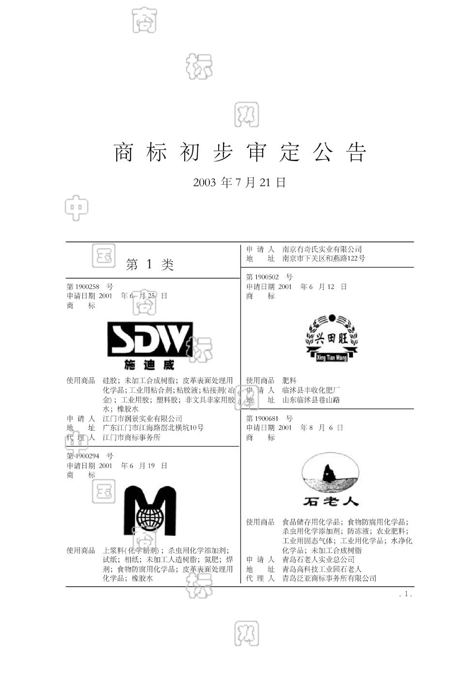 2003-11-13 商标注册申请 | 打印注册证