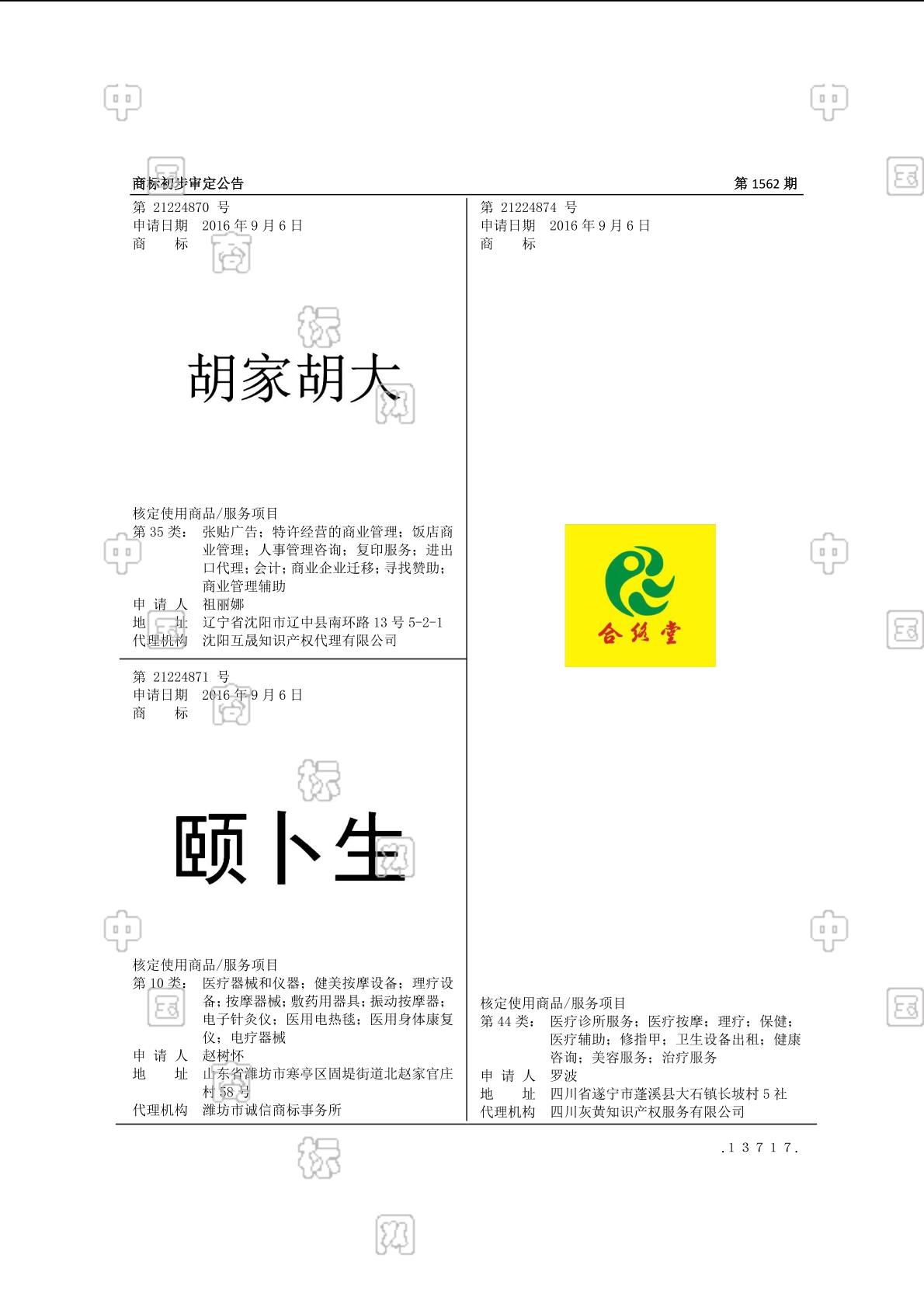 商标初步审定公告 2017-08-06 第1562期 查看公告