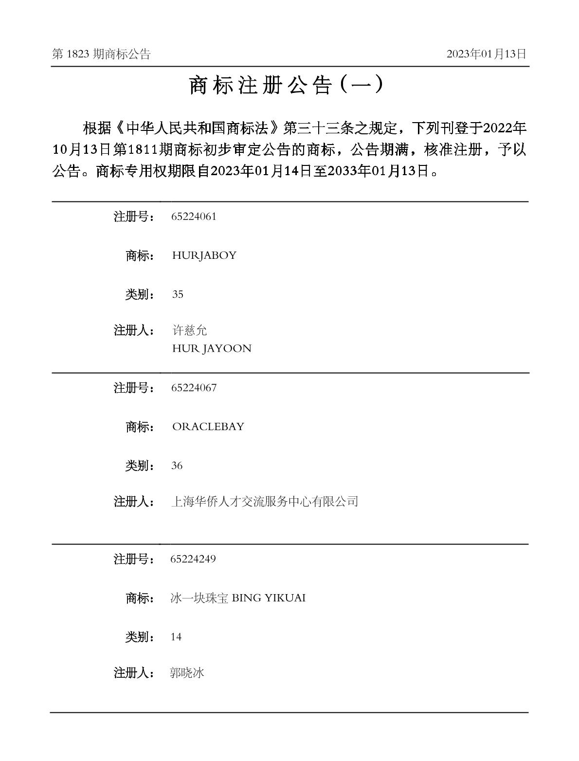 2023-02-07 商标注册申请 | 注册证发文