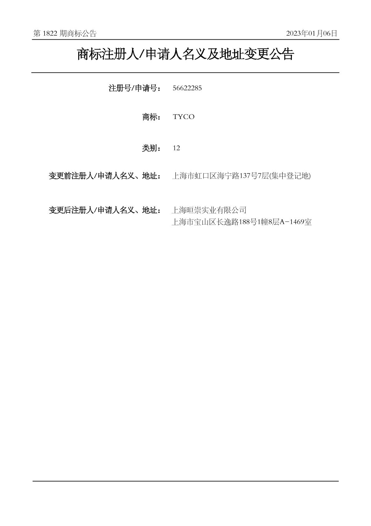 2022-12-31 变更商标申请人/注册人名义/地址 | 核准证明打印发送