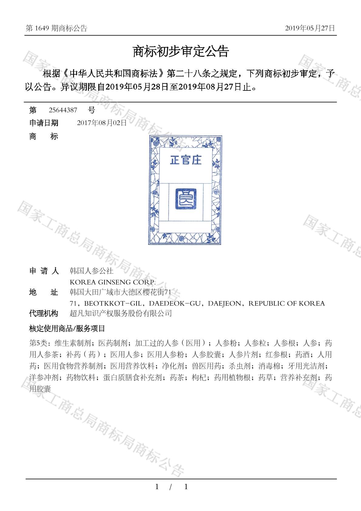 【正官庄 良】商标详情