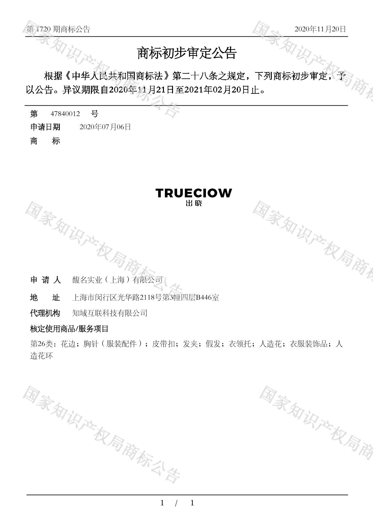 【出晓 TRUECLOW】商标详情