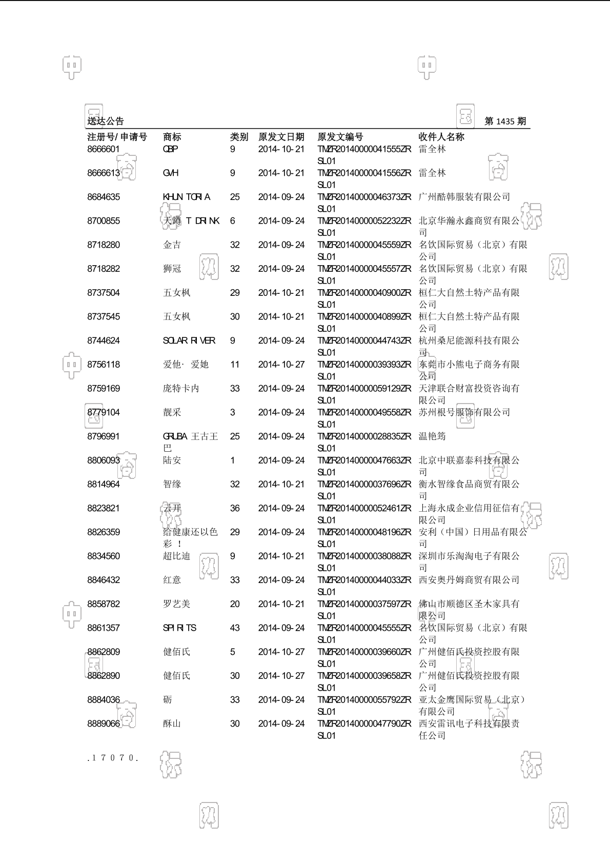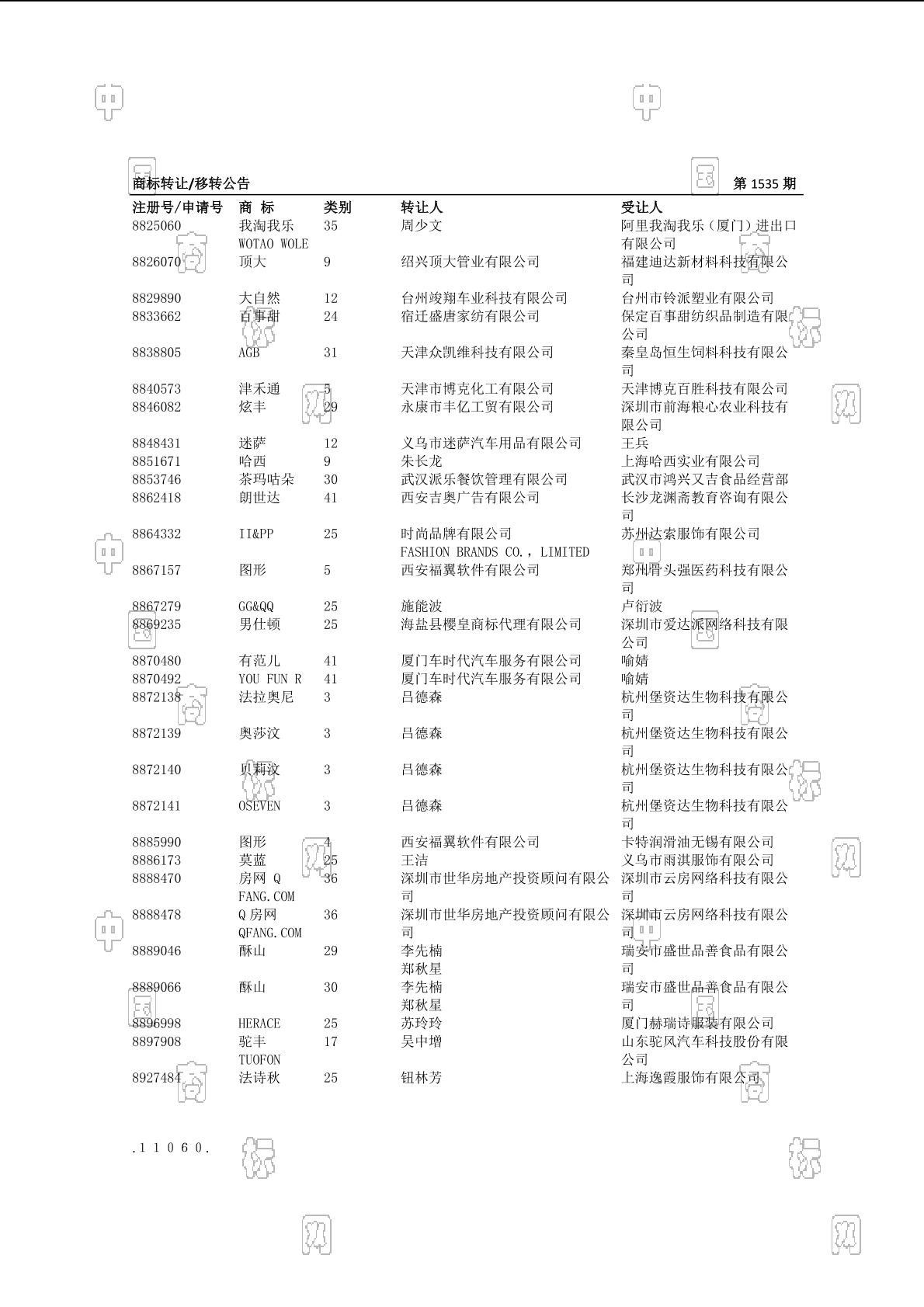 2015-05-24 商标转让 | 排版送达公告(商标转让申请受理通知书)