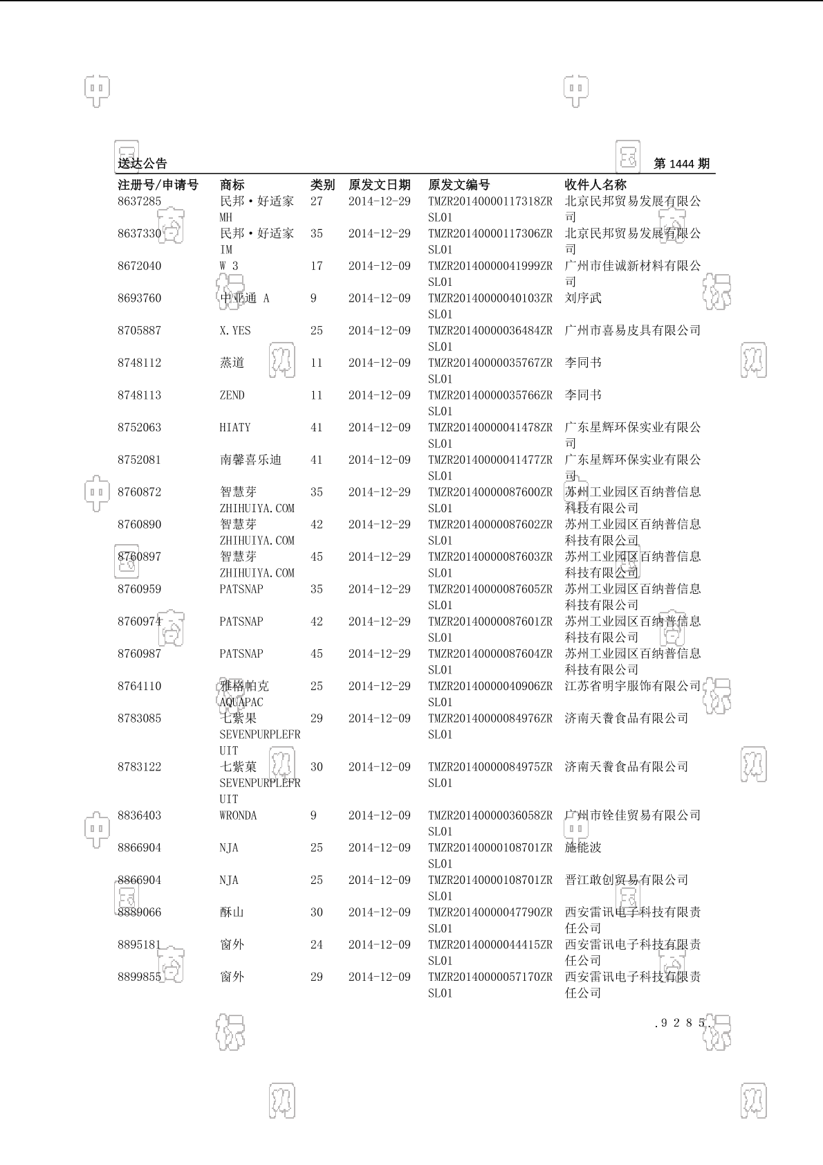 2014-11-20 商标转让 | 有退信(商标转让申请受理通知书)
