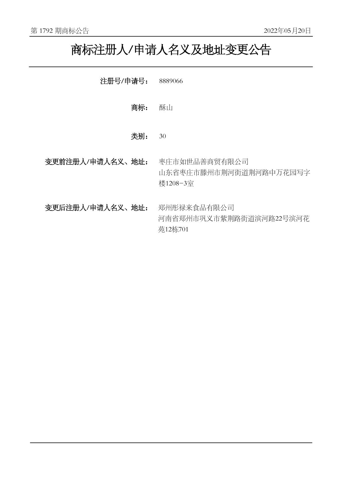 2022-05-18 变更商标申请人/注册人名义/地址 | 核准证明打印发送