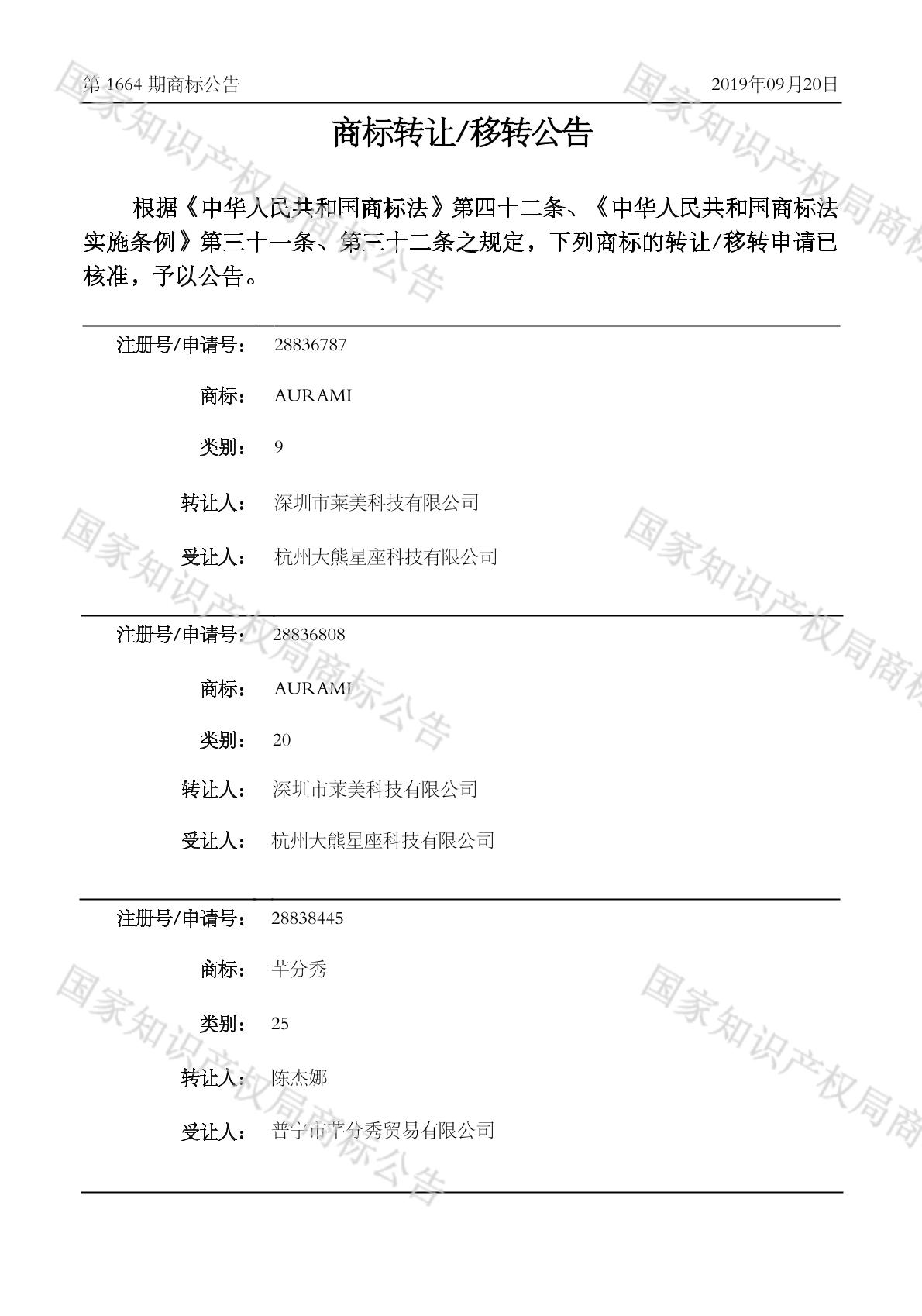 2019-11-29 商标转让 | 申请收文