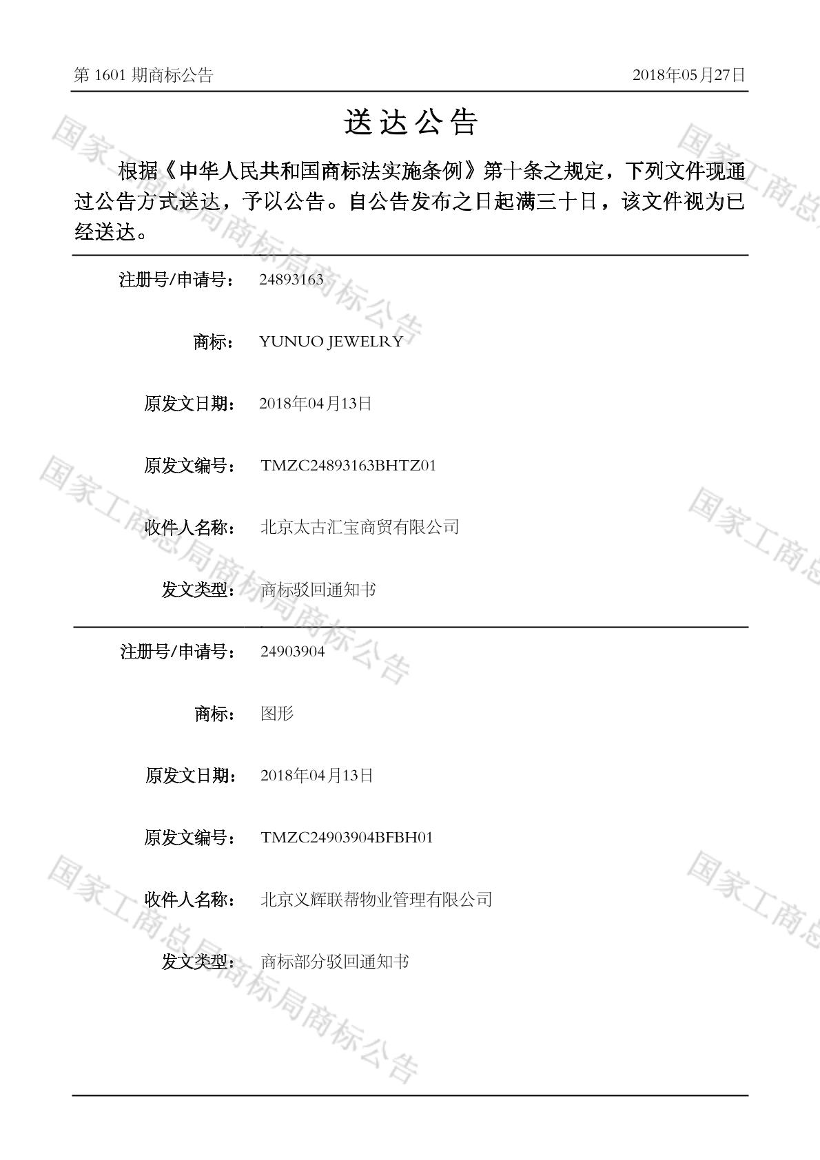 2018-05-28 商标注册申请 | 排版送达公告(商标部分驳回通知书)