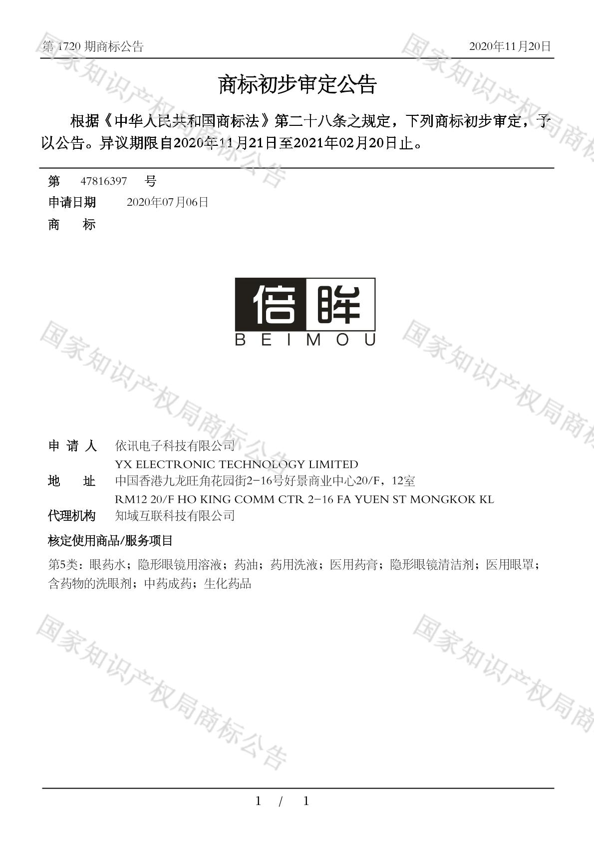 0501-中药成药;0501-医用药膏;0501-含药物的洗眼剂;0501-生化药品;0501-眼药水;0501-药油;0501-药用洗液;0501-隐形眼镜清洁剂;0501-隐形眼镜用溶液;0506-医用眼罩 - 1720
