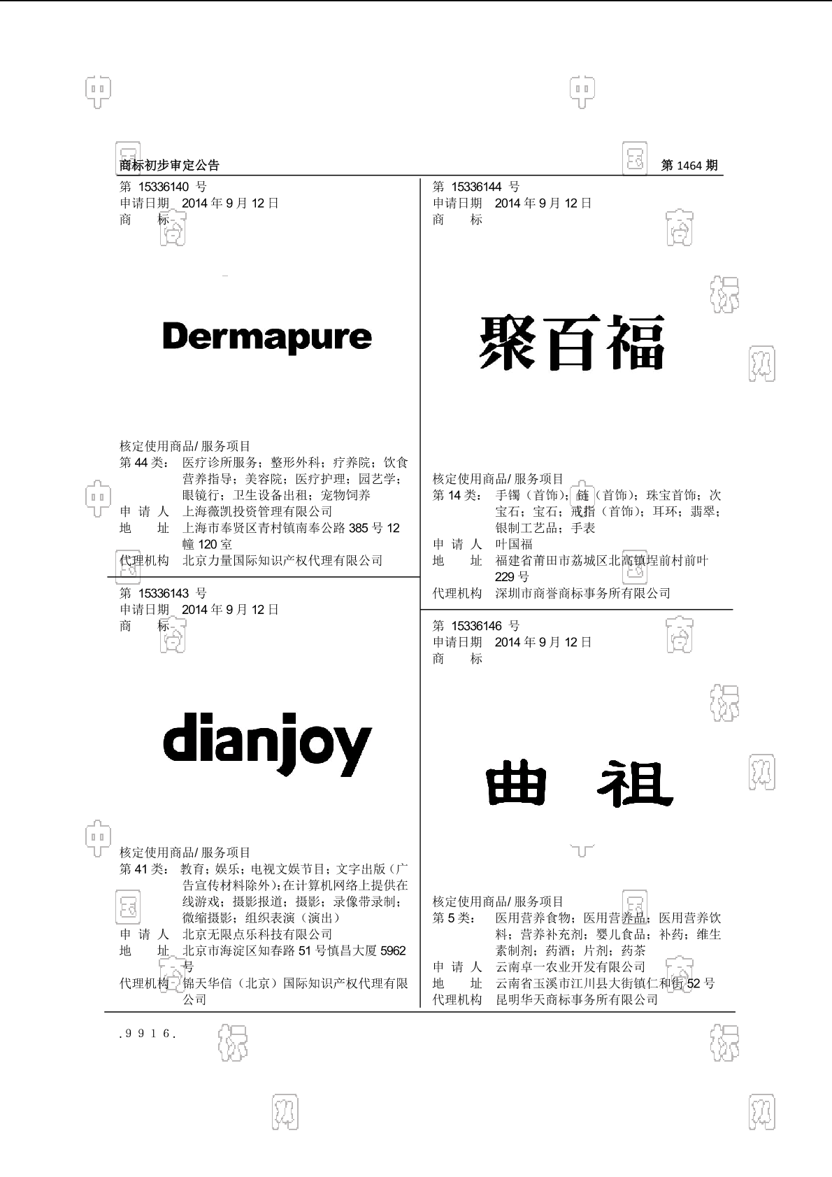 2014-09-12 商标注册申请 | 申请收文