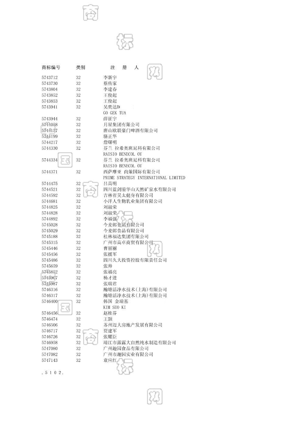 商标注册公告(二) 2015-10-20 第1476期 查看公告