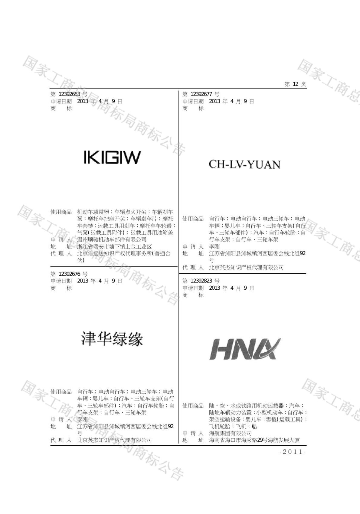 1201-陆、空、水或铁路用机动运载器;1202-小型机动车;1202-汽车;1202-陆、空、水或铁路用机动运载器;1202-陆地车辆动力装置;1204-小型机动车;1204-自行车;1204-陆、空、水或铁路用机动运载器;1205-架空运输设备;1206-婴儿车;1207-雪橇(运载工具);1208-飞机轮胎;1209-陆、空、水或铁路用机动运载器;1209-飞机;1210-船;1210-陆、空、水或铁路用机动运载器 - 1411