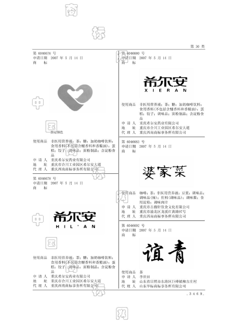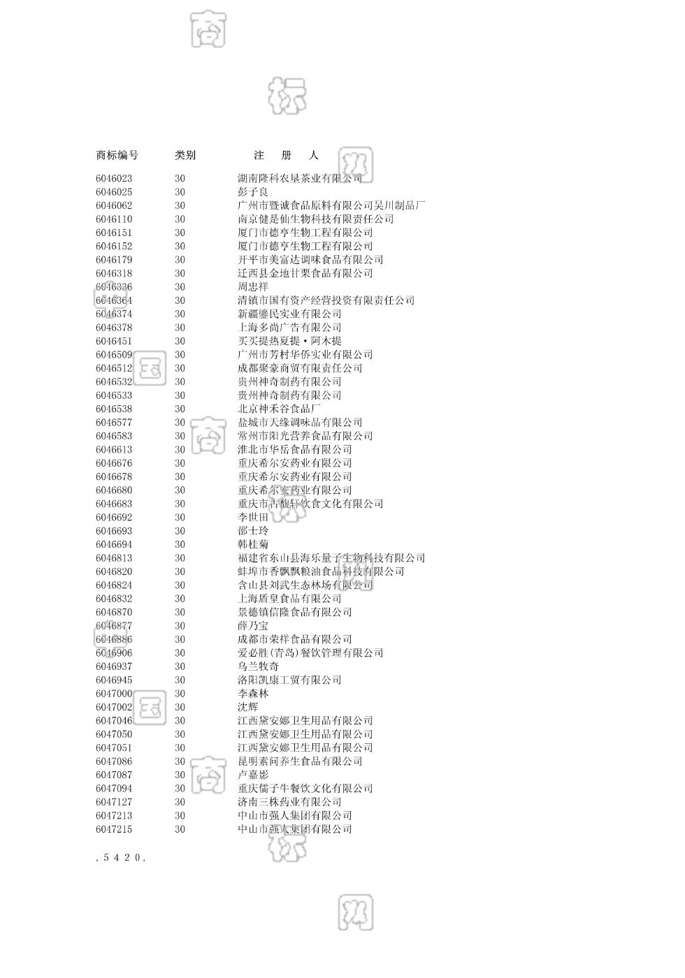 3001-加奶咖啡饮料;3002-茶;3003-糖;3004-糖;3005-非医用营养液;3006-蛋糕;3007-饺子;3009-面粉制品;3012-含淀粉食品;3016-调味品;3018-食用香料(不包括含醚香料和香精油) - 1184