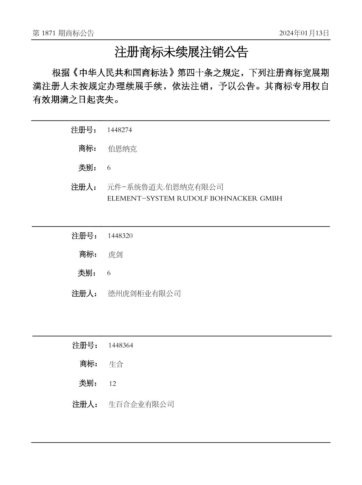 2024-01-15 期满未续展注销商标 | 排版未续展注销公告